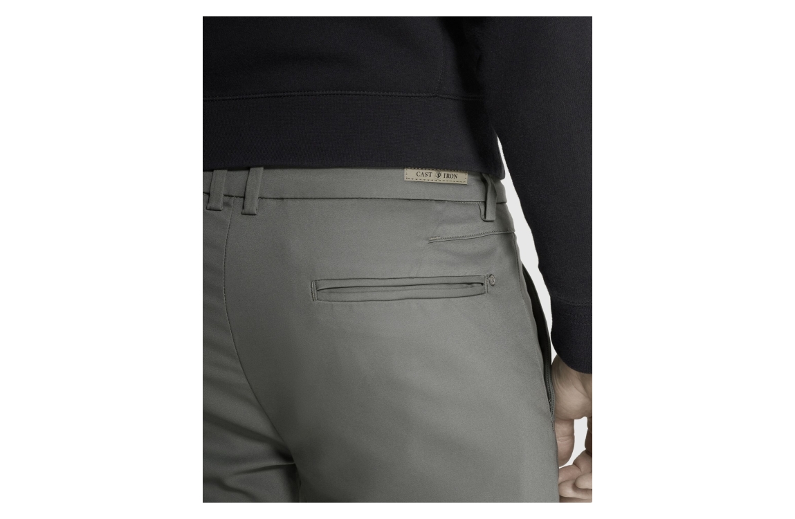 Cast Iron RISER chino CTR2602600-9046. Dit rechtvallend model sluit door middel van een knoop en rits. Deze grijze chino van Cast Iron is voorzien van verschillende broekzakken en afgewerkt met riemlusjes.