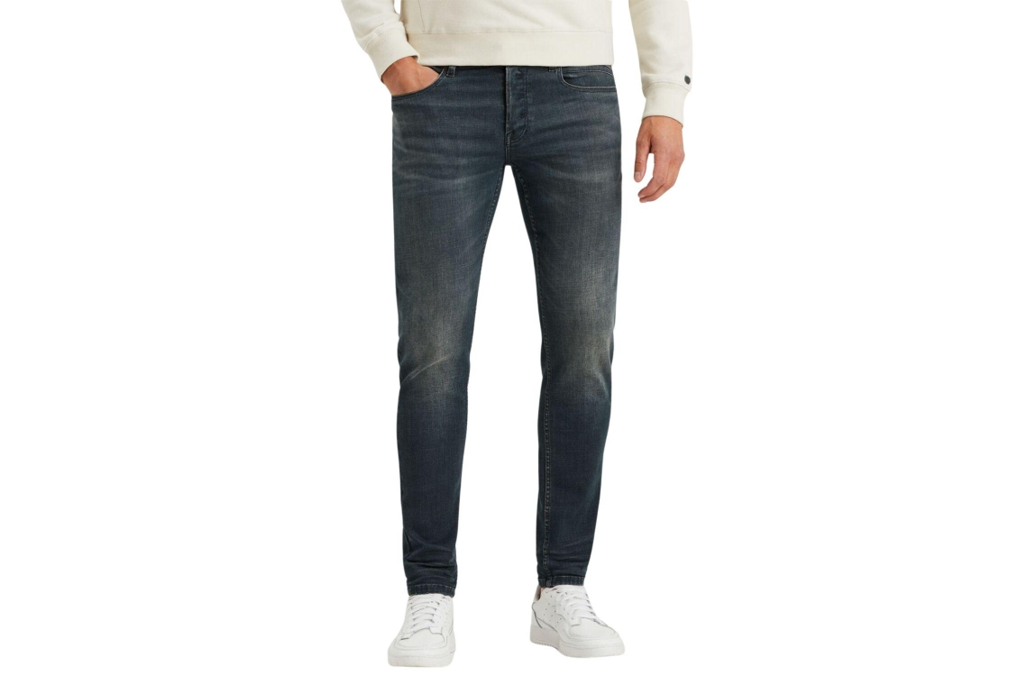 Cast Iron jeans CTR240-SUD. Dit slim fit model sluit door middel van een knoop en heeft lange pijpen. Deze donker blauwe jeans van Cast Iron is voorzien van twee zakken aan de voor- en achterzijde met extra muntzakje en is bewerkt met een lichte wassing.