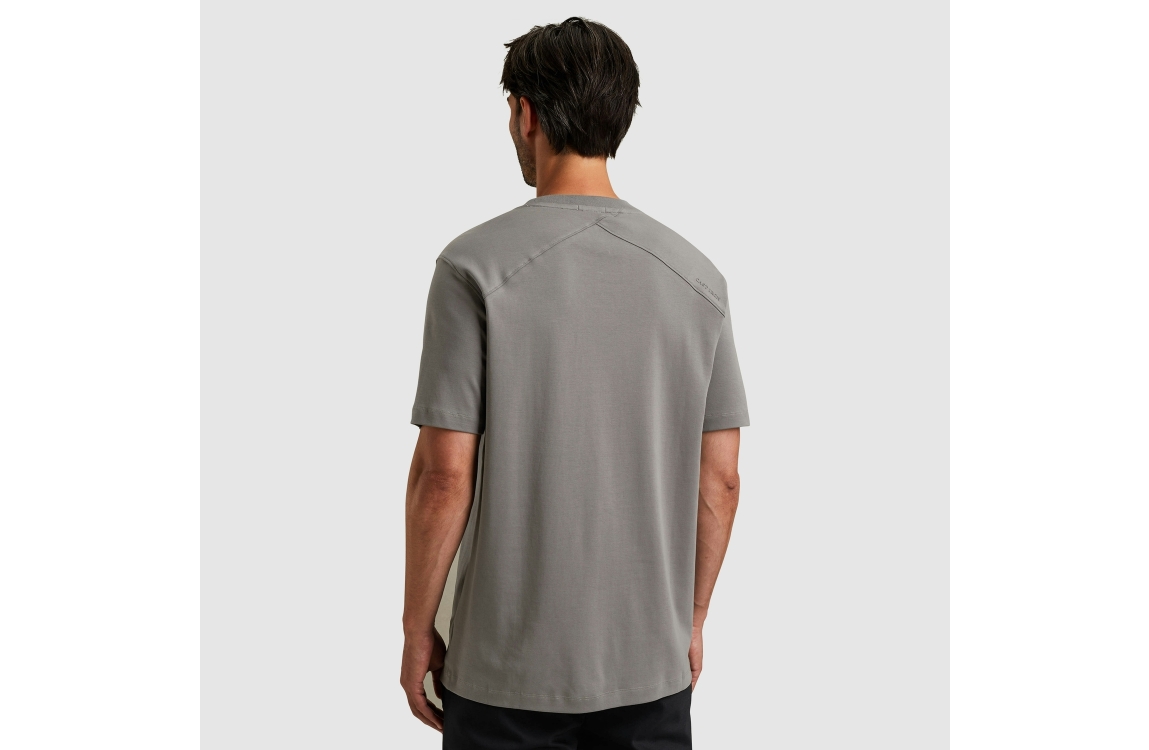 Cast Iron Short sleeve r-neck regular fit in 9133 Granite gray. Dit rechtvallende model is voorzien van een ronde hals en heeft korte mouwen. Dit grijze T-shirt van Cast Iron is bewerkt met het logo aan de voorzijde.