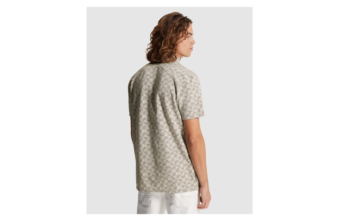 Cast Iron polo CPSS2603853. Dit regular fit model is voorzien van een kraag en heeft korte mouwen. Deze witte/groene polo van Cast Iron sluit door middel van knopen en is all-over bewerkt met een bladprint.