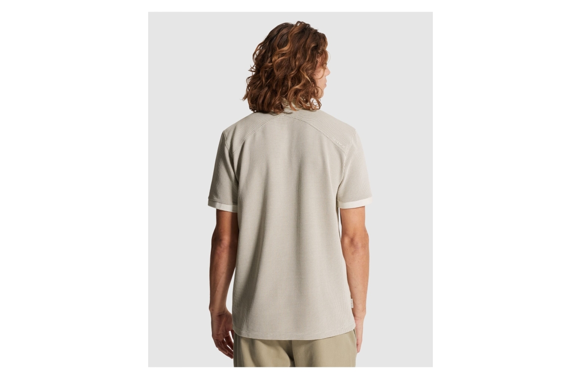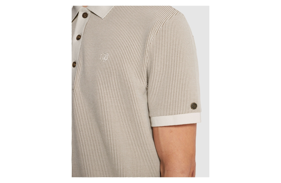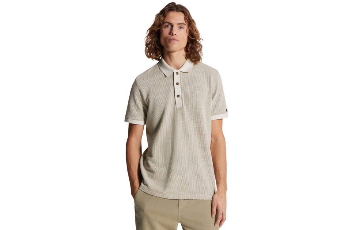 Cast Iron short sleeve polo CPSS2603852. Dit regular fit model is voorzien van een kraag en heeft korte mouwen. Deze witte/groene polo van Cast Iron sluit door middel van knopen, is uitgevoerd in een wafelstructuur en is afgewerkt met het logo op de borst.