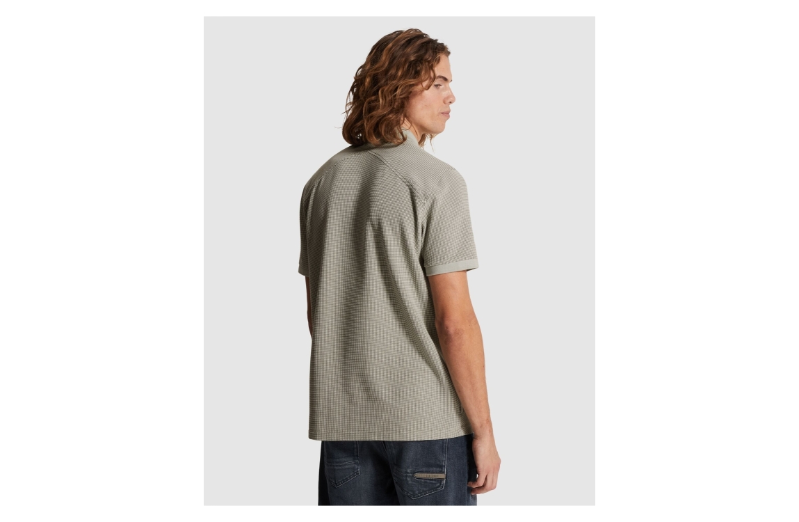 Cast Iron short sleeve polo CPSS2603852. Dit regular fit model is voorzien van een kraag en heeft korte mouwen. Deze groene polo van Cast Iron sluit door middel van knopen, is uitgevoerd in een wafelstructuur en is afgewerkt met het logo op de borst.