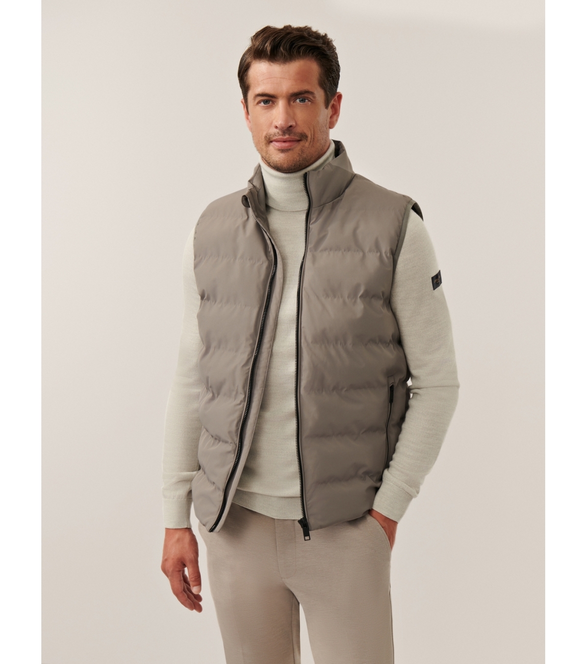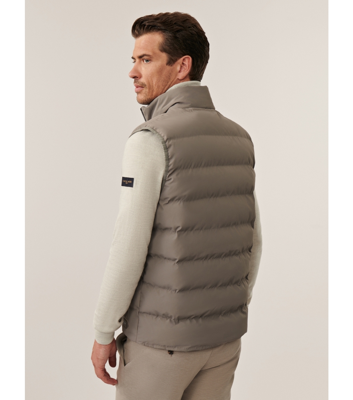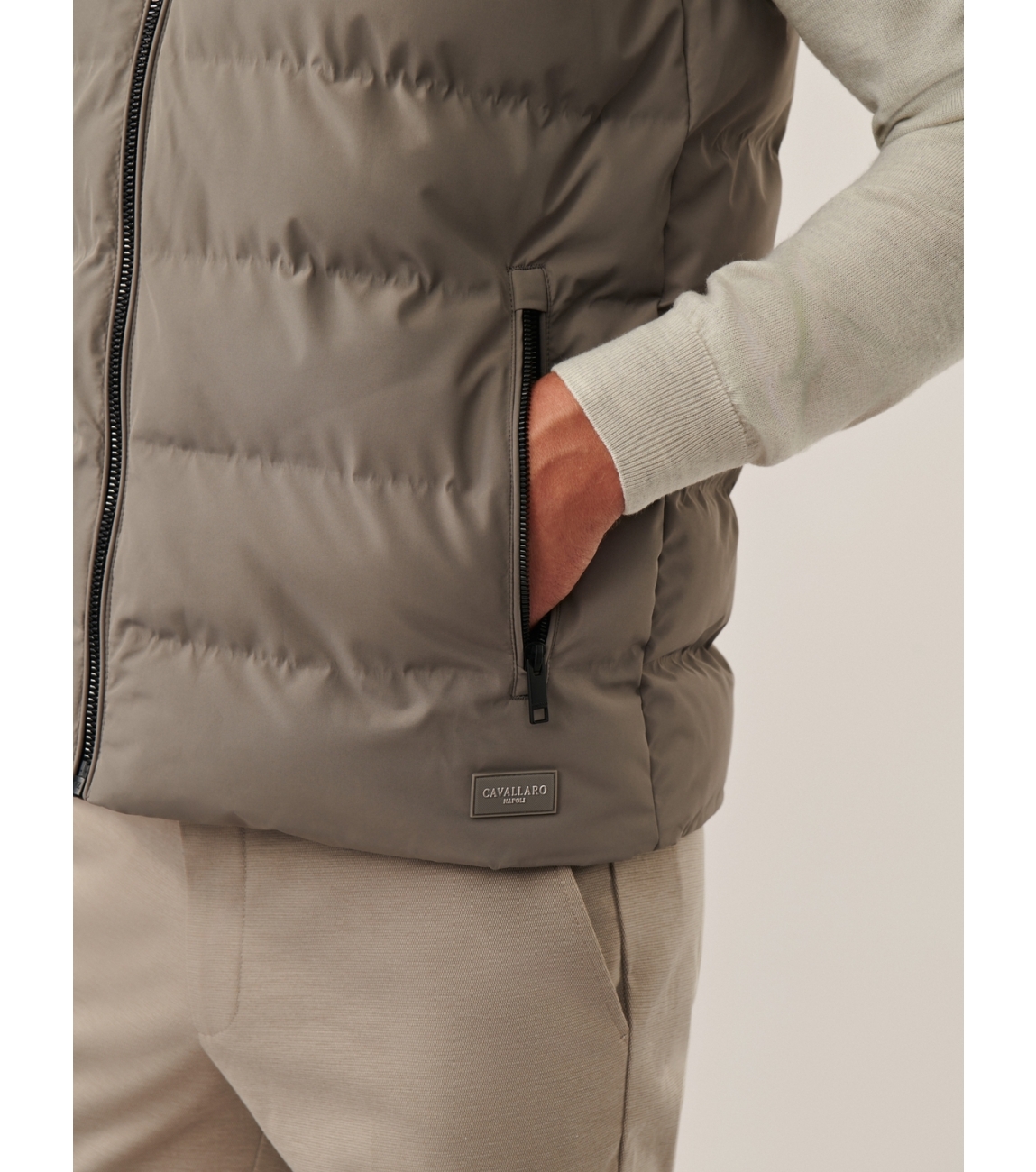Cavallaro Cesario Bodywarmer 960000 Faded grey. Dit rechtvallende model is voorzien van een ronde hals met opstaande kraag en is mouwloos. Deze grijze bodywarmer van Cavallaro sluit door middel van een rits en is afgewerkt met twee zakken met rits.