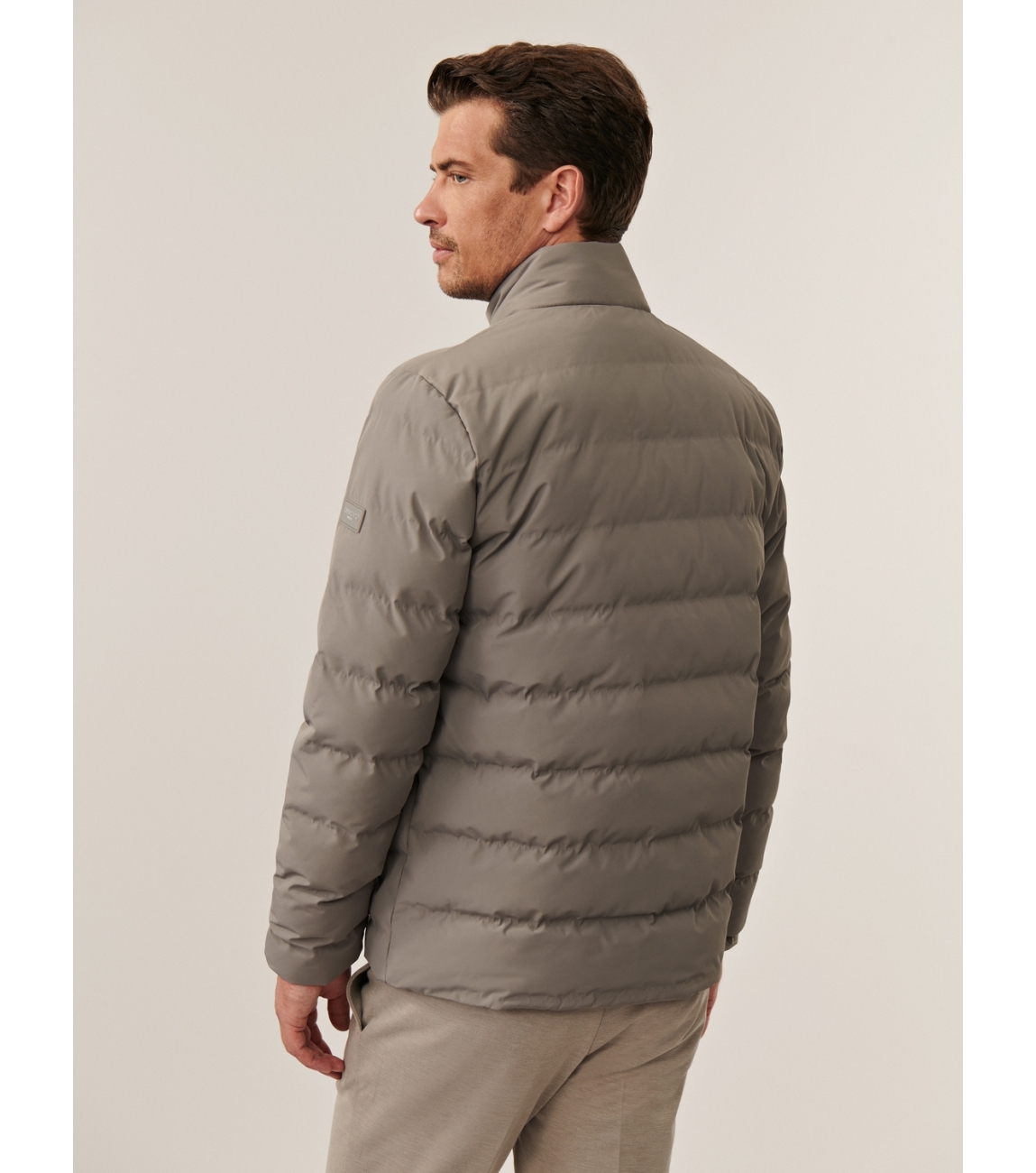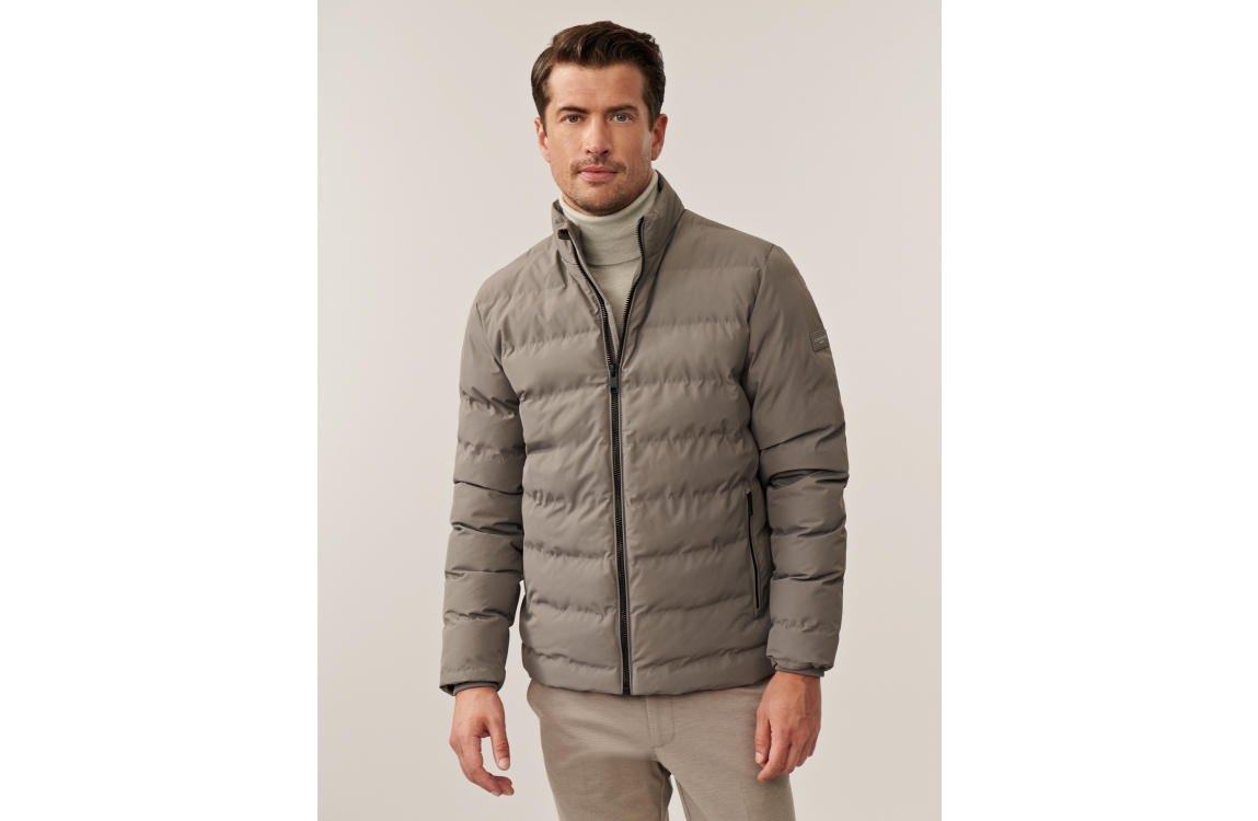 Cavallaro Cesario Jacket 960000 Faded grey. Dit rechtvallende model is voorzien van een ronde hals met opstaande kraag en heeft lange mouwen. Deze grijze jas van Cavallaro sluit door middel van een rits en is afgewerkt met twee zakken met rits.