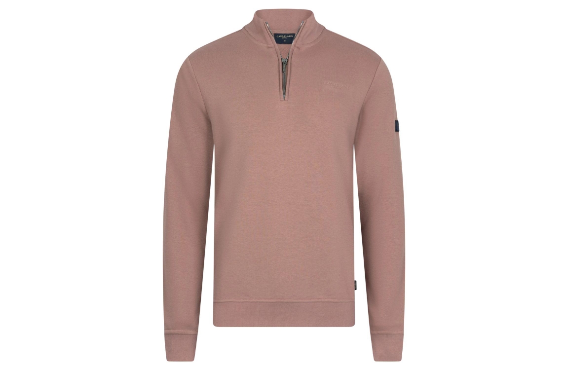 Cavallaro Diagono Half Zip Sweat 310000 Old pink. Dit rechtvallende model heeft lange mouwen en een hoge kraag. Deze oud roze pullover van Cavallaro sluit door een half zip rits en is afgewerkt met rib boorden. Dit model heeft een merk embleem op de mouw en op de borst.