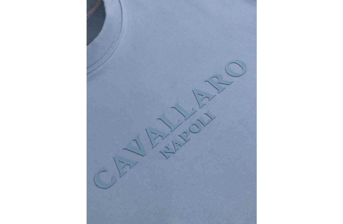 Cavallaro Enego R Neck Sweat. Dit regular fit model heeft een ronde kraag en lange mouwen. Deze licht blauwe sweater van Cavallaro heeft het logo midden op de borst en heeft afgewerkte boorden.