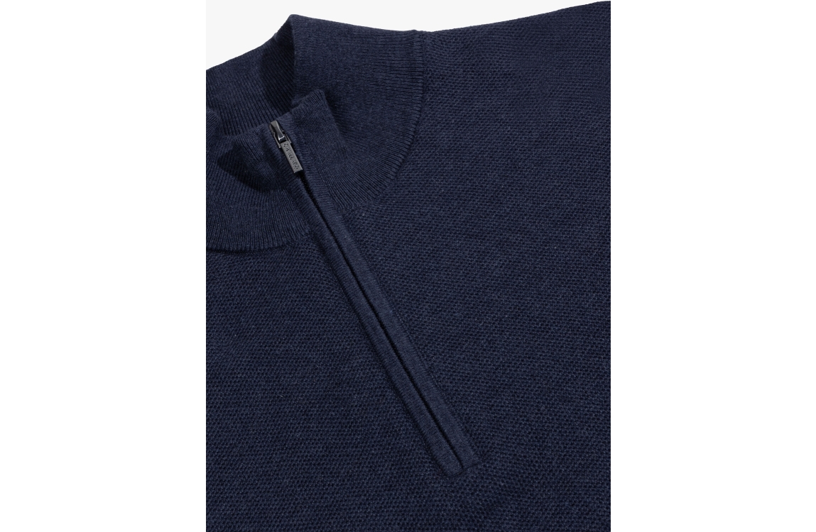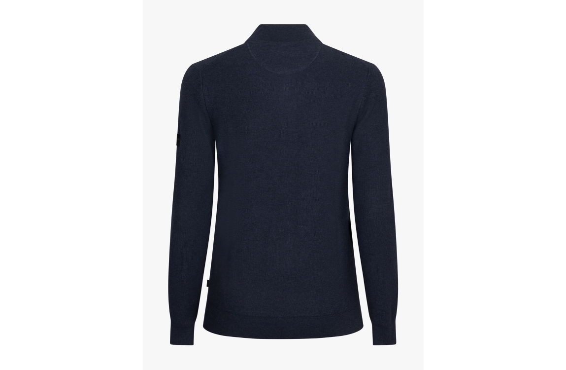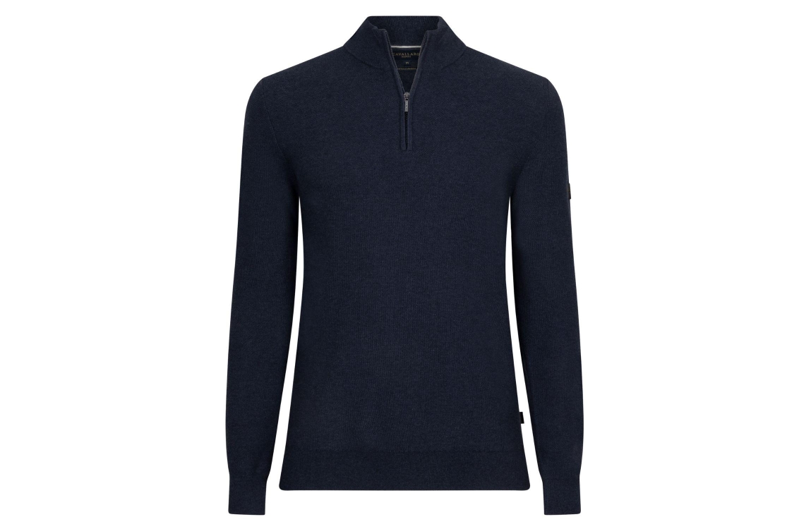 Cavallaro Levanzio Half Zip Pullover 699000 Dark blue. Dit regular fit model heeft een opstaande kraag die sluit door een rits en heeft lange mouwen. Deze donker blauwe pullover van Cavalloro is afgewerkt met boorden.