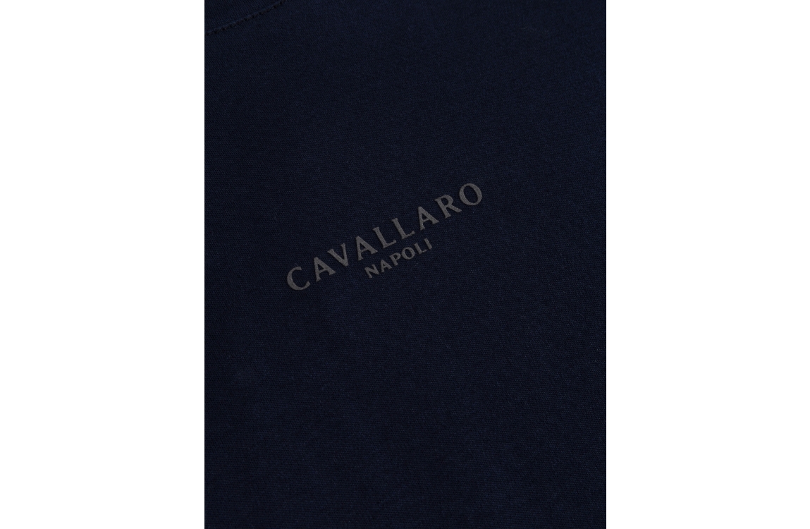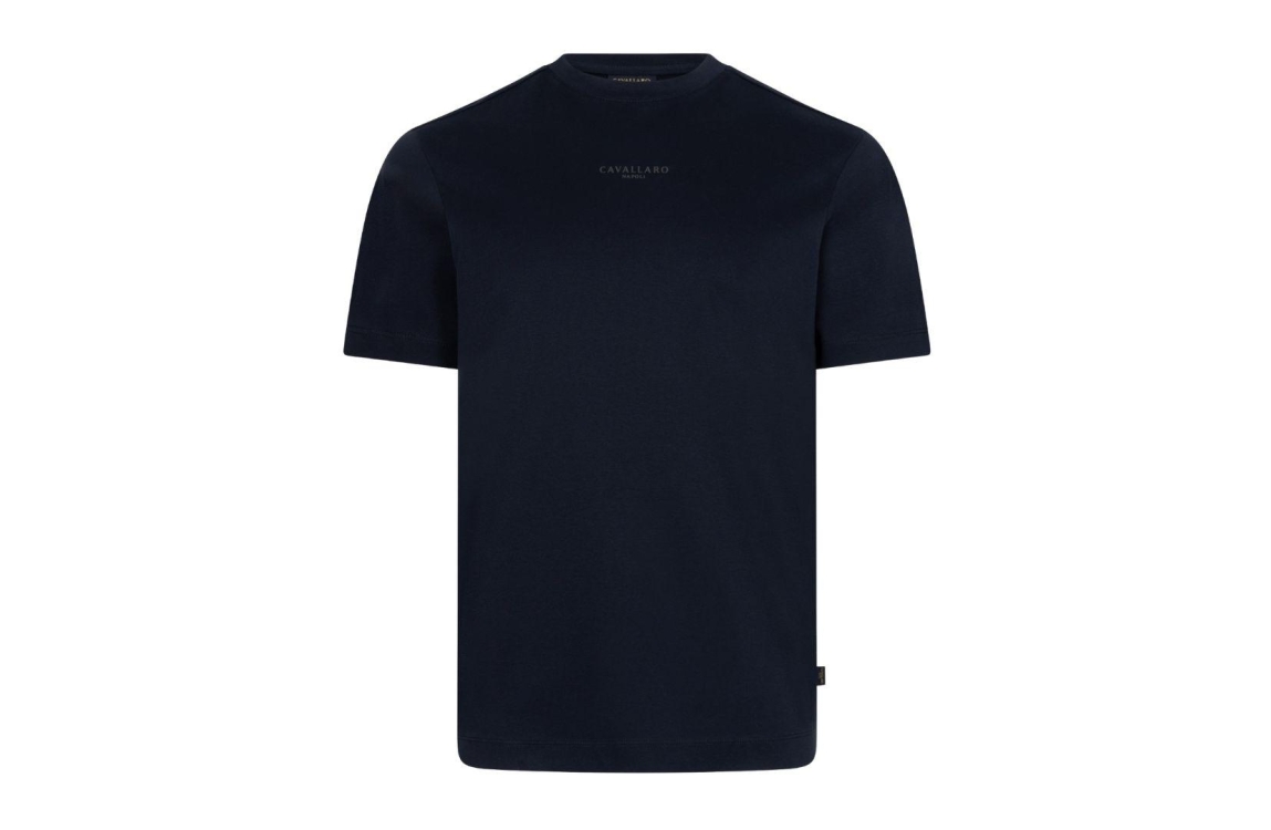 Cavallaro Luvati Tee 117261007. Dit rechtvallend model is voorzien van een ronde hals en heeft korte mouwen. Deze donkerblauwe T-shirt van Cavallaro is aan de voorzijde bewerkt met het logo.