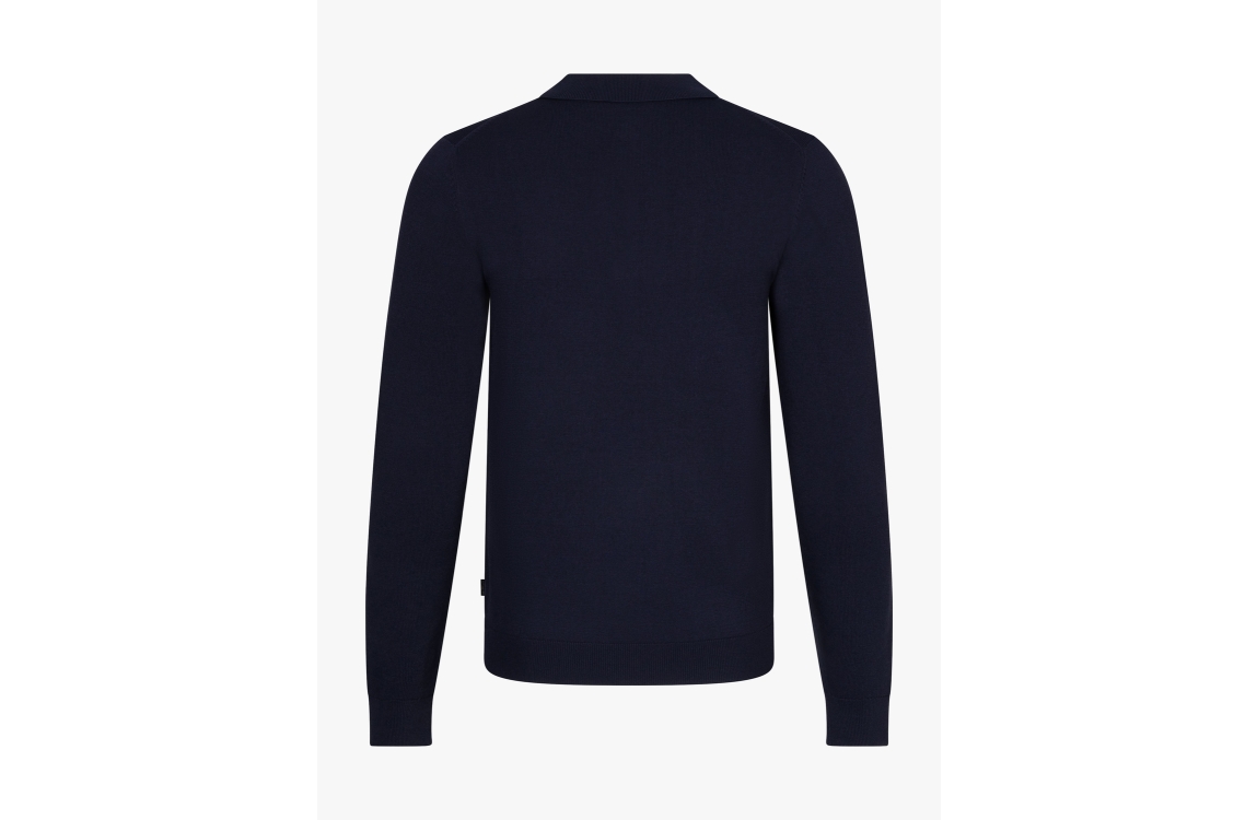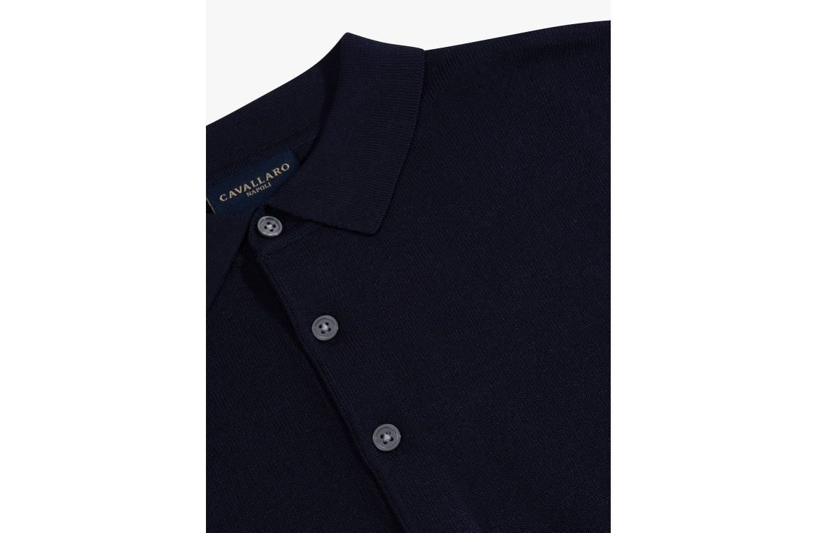 Cavallaro Milacio Long Sleeve Polo. Dit slim fit model beschikt over lange mouwen en heeft een kraag. Deze donker blauwe polo van Cavallaro is te sluiten met knopen, heeft kleine boordjes aan de mouwen en aan de onderkant.