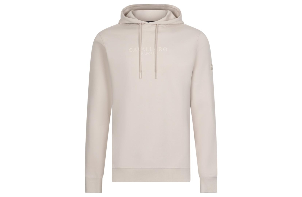 Cavallaro Murano Hoodie 120261009. Dit rechtvallend model heeft een capuchon met trekkoorden en lange mouwen. Deze beige hoodie van Cavallaro is voorzien van een buidelzak en afgewerkt met een logo op de voorzijde en op de mouw.