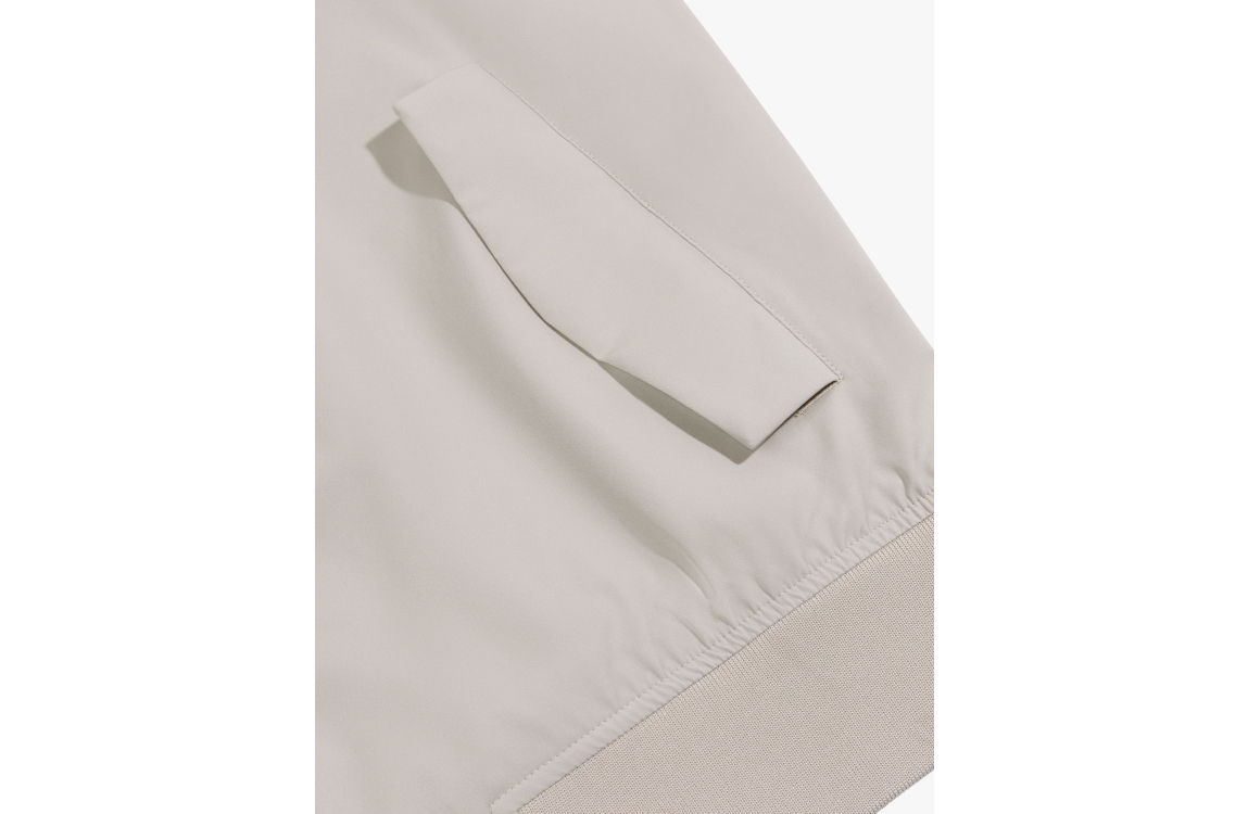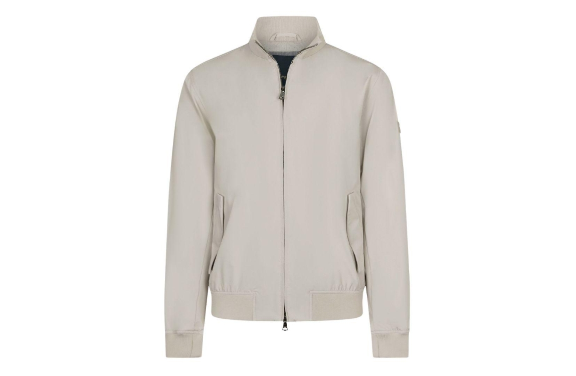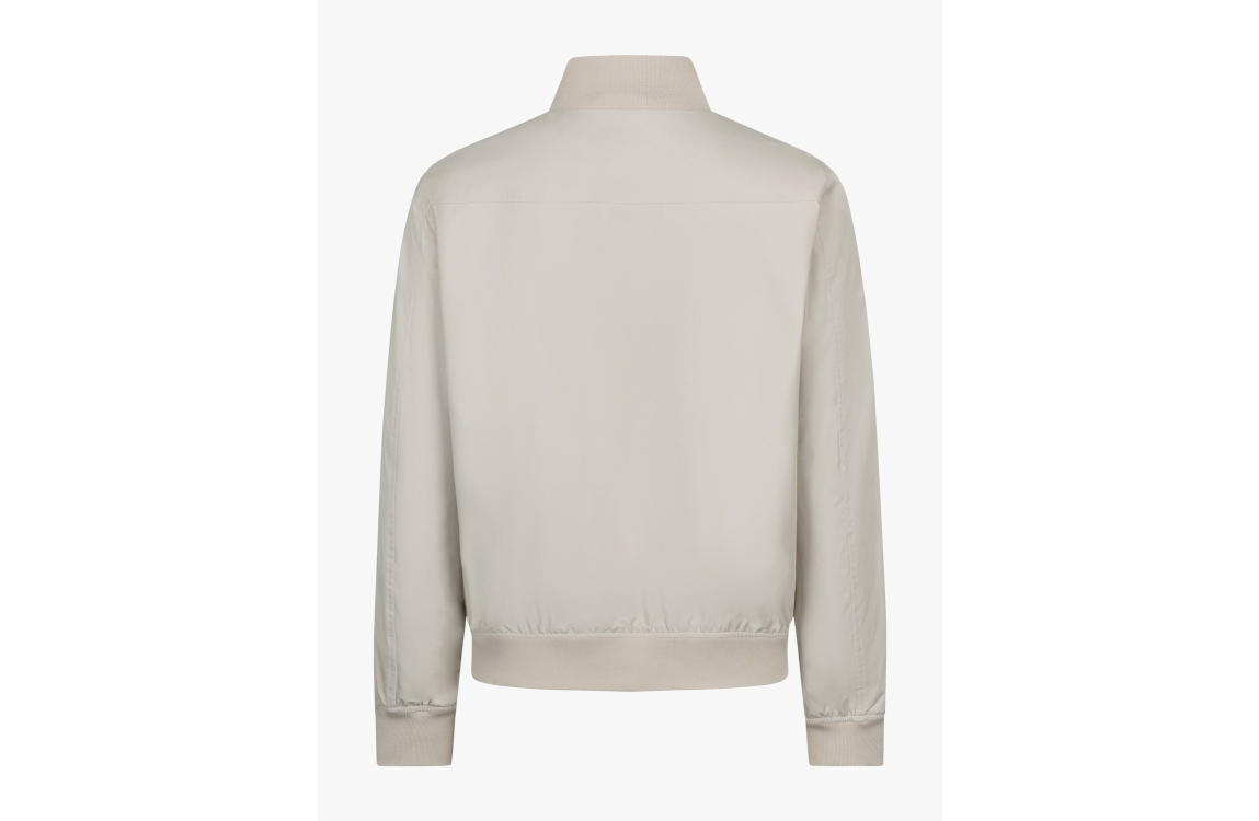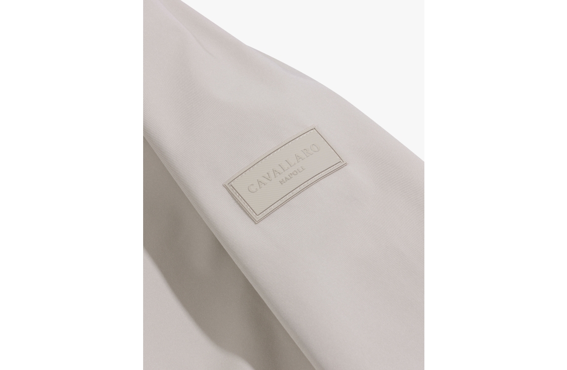 Cavallaro Pillagio jacket 112261002. Dit rechtvallend model is voorzien van een ronde opstaande kraag en heeft lange mouwen afgewerkt met het logo op de schouder. Deze kitkleurige jas van Cavallaro sluit door middel van een dubbele rits en beschikt over twee klepzakken met knoop en een binnenzak.
