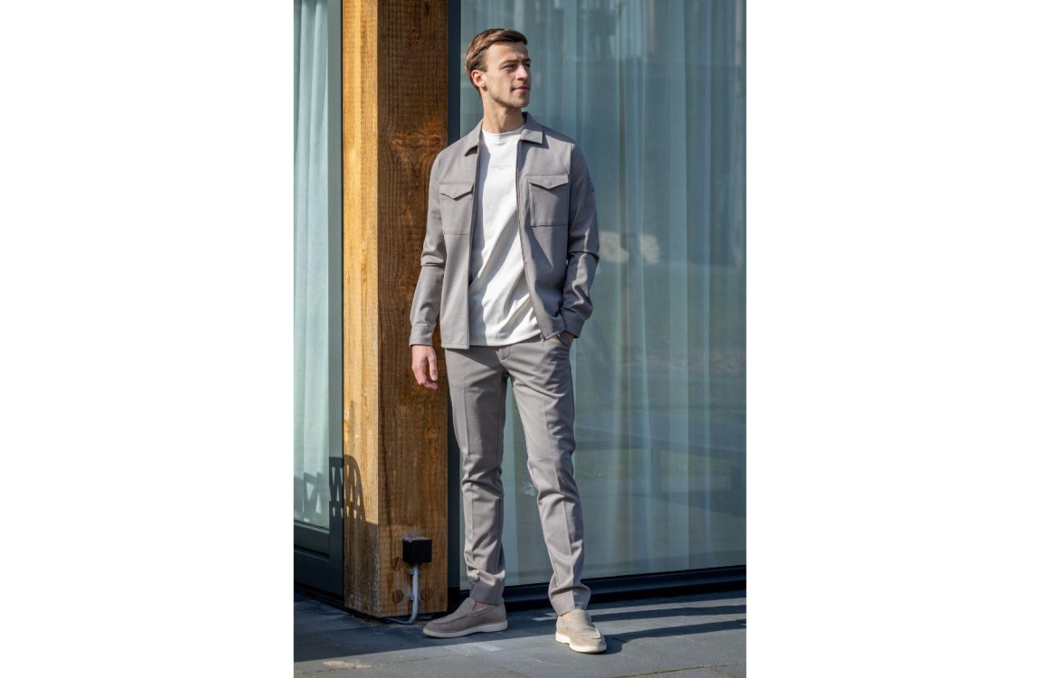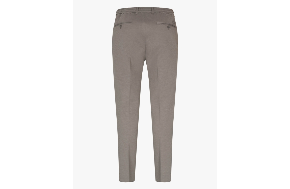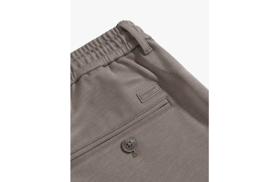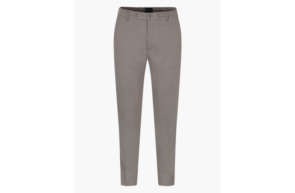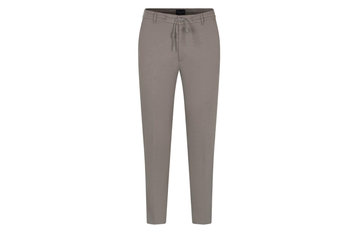 Cavallaro Zaverio pantalon 121261016. Dit rechtvallend model sluit door middel van een knoop, rits en trekkoord. Deze taupe kleurige pantalon is voorzien van verschillende broekzakken.