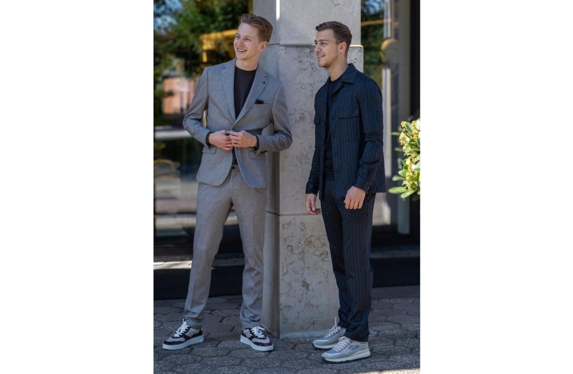 CG-Club of gents Constantin 52.252J2 / 225960 jack. Dit rechtvallende model heeft een kraag, lange mouwen en sluit door middel van knopen. Dit grijs/blauw gestreepte jack van CG-Club of gents is voorzien van klepzakken op het voorpand en afgewerkt met knopen aan de onderzijde van de mouw.