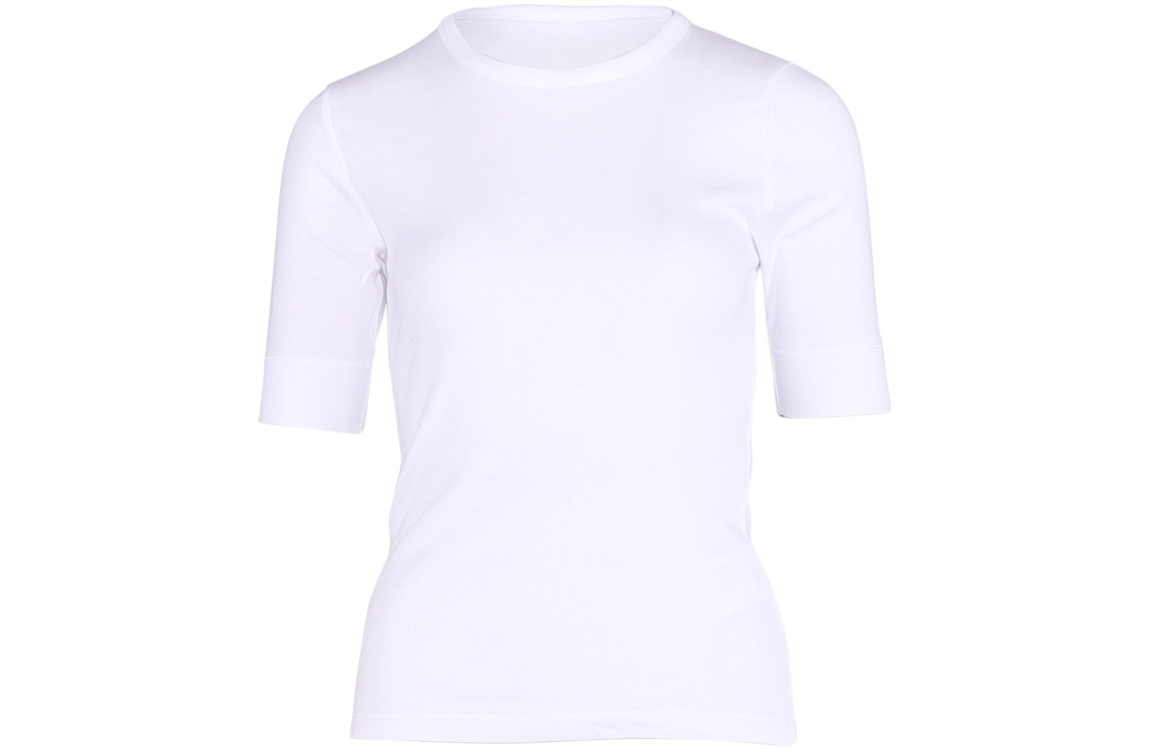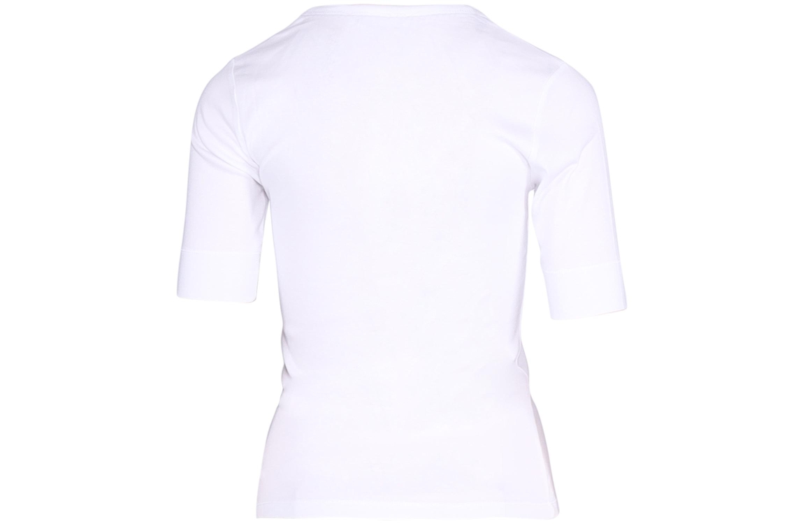 Co Couture T-shirt Granny. Dit aangesloten model is voorzien van een ronde hals en heeft korte mouwen. Dit witte T-shirt van Co Couture is uitgevoerd in een stretch materiaal.