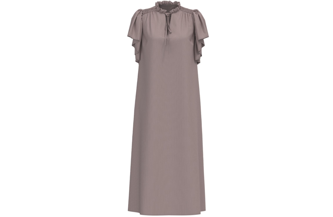 Co Couture jurk Hera 36421. Dit rechtvallend model is voorzien van een ronde hals met v-inkeping en heeft korte sierlijke mouwen. Deze oud roze jurk van Co Couture beschikt over steekzakken en sluit bij de hals door middel van een strikkoord. Dit model is bij de hals bewerkt met ruches en bij de schouders met smockdetails.