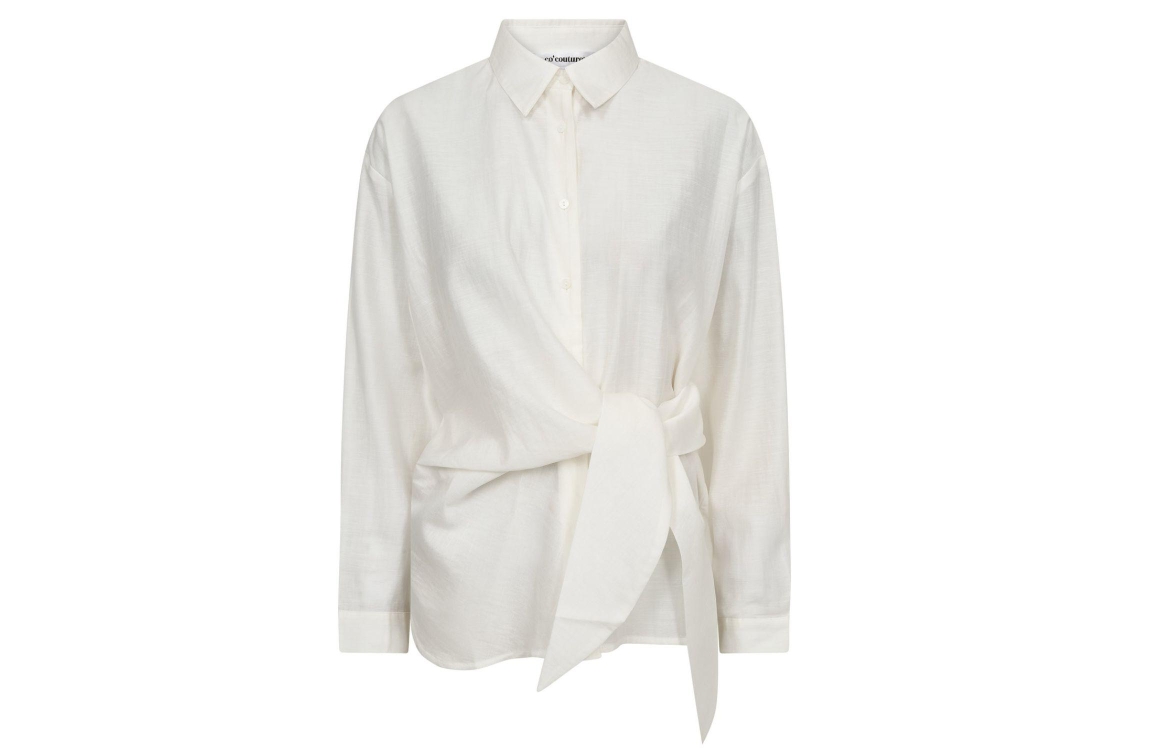 Co Couture IdinaCC tie shirt 11 Off white. Dit rechtvallende model heeft een kraag en lange mouwen. Deze off-white blouse van Co Couture sluit aan de voorzijde door middel van knopen. Het model is bewerkt met een strikdetail aan de zijkant.