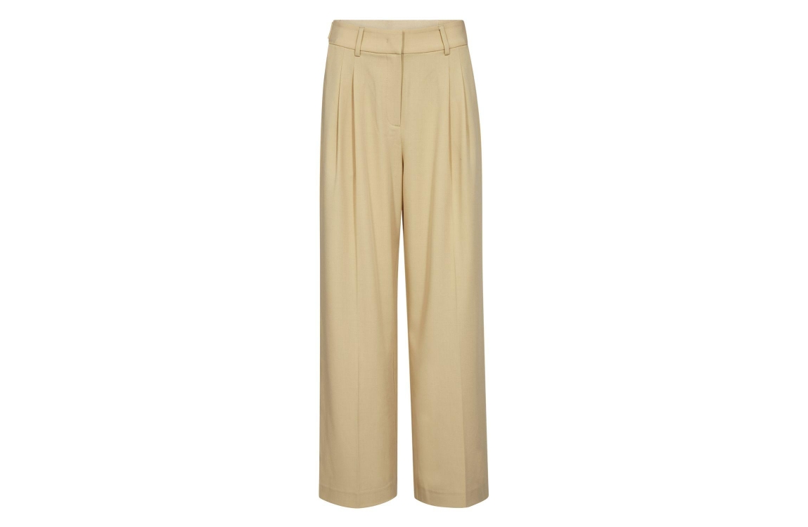 Co Couture NilanCC Pleat LLPant PaleYellow. Dit wide-leg model sluit door middel van een blinde sluiting, rits en heeft ceintuurlussen. Deze gele pantalon van Co Couture heeft steekzakken, paspelzakken achter. Dit model heeft een hoge taille en plooien aan de voorkant.