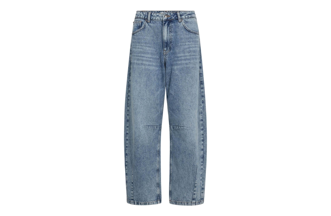 Co Couture RuthieCC Barrel LL Jeans Denim blue. Dit barrel fit model sluit door middel van een knoop- en ritssluiting. Deze blauwe jeans van Co Couture heeft een losse pasvorm en wijde pijpen. Dit model is afgewerkt met twee voorzakken en twee achterzijde.