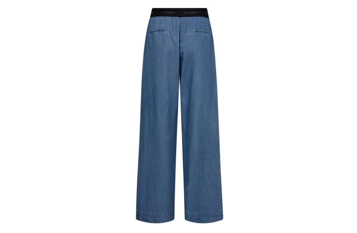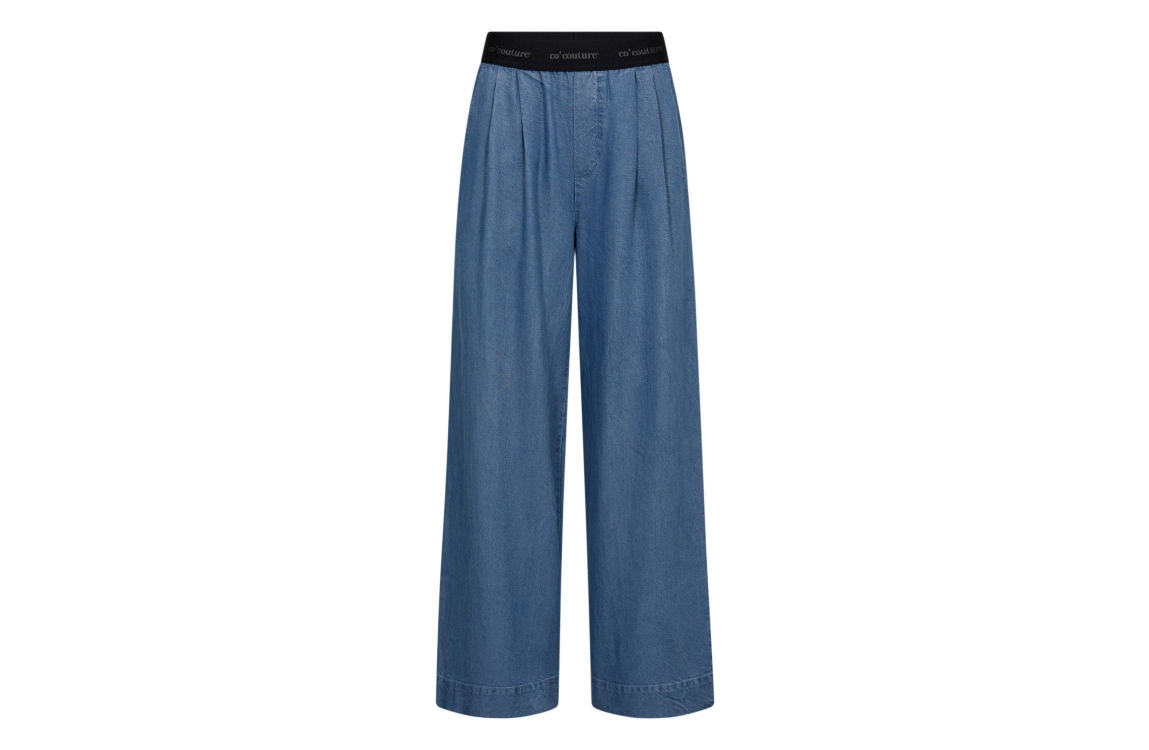 Co Couture TillyCC Logo LL Pant Denim blue. Dit wide fit model sluit door middel van een elastische boord, gedetailleerd met het merklogo. Deze denim broek van Co Couture is voorzien van twee steekzakken aan de voorzijde en twee paspelzakken aan de achterzijde.