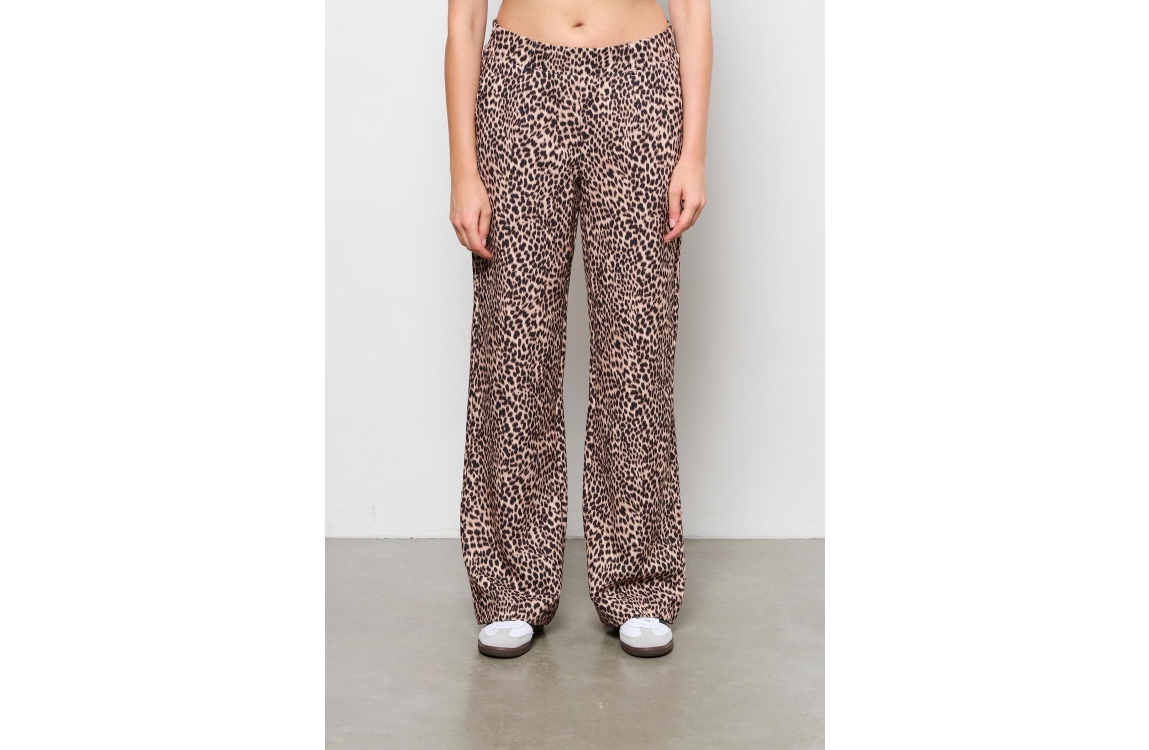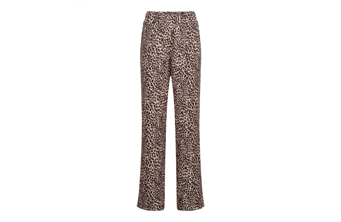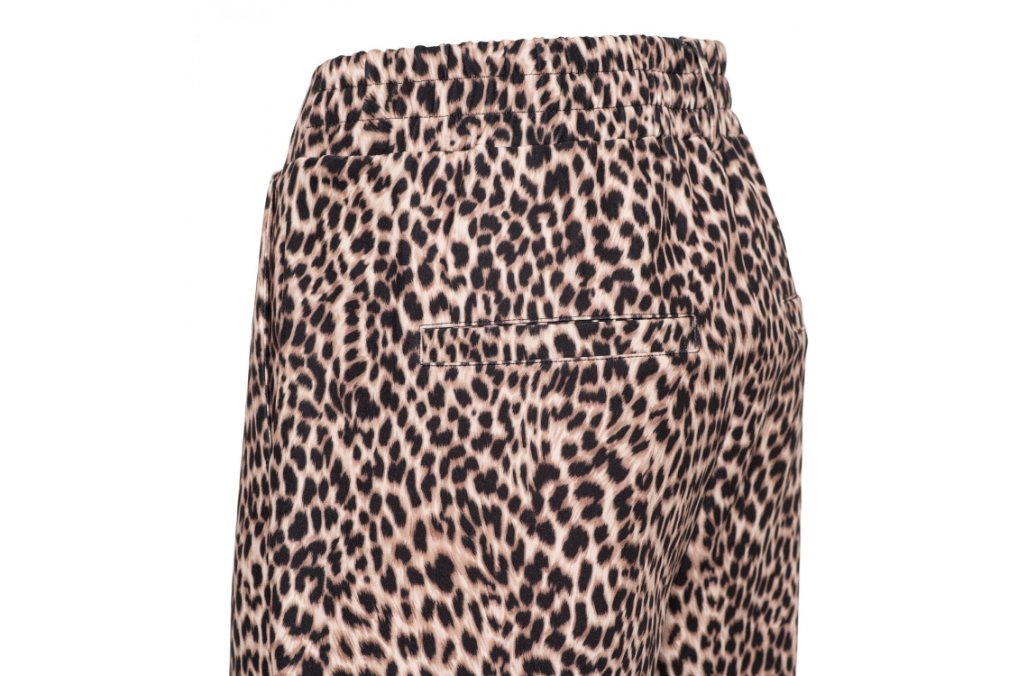 &Co Woman broek camilla animal pa336. Dit wide leg sluit door middel van een elastische boord met ceintuurlussen en is voorzien van twee steek- en paspelzakken. Dit zwart/beige model is bewerkt met een dierenprint.