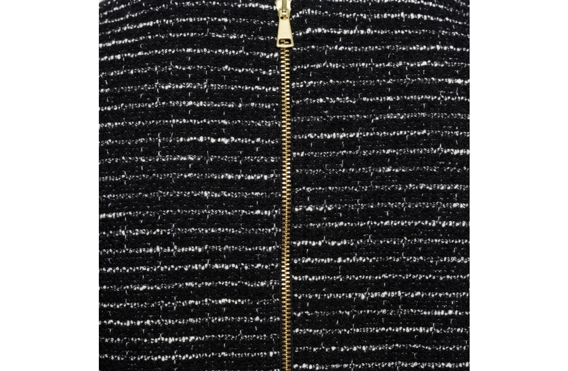 &Co Woman jurk Casey DR239. Dit regular fit model heeft lange mouwen en een ronde hals. Deze zwarte jurk van &Co Woman sluit aan de achterzijde door middel van een rits en is gedetailleerd met gouden knopen op de schouder.