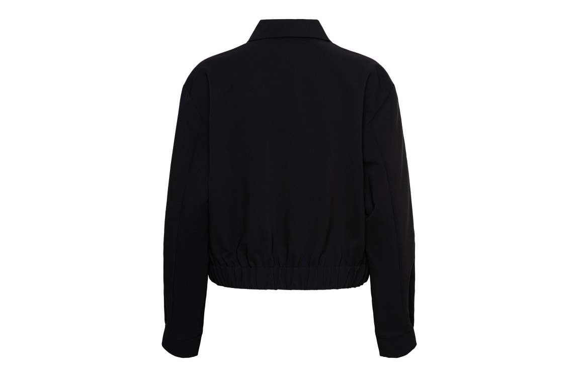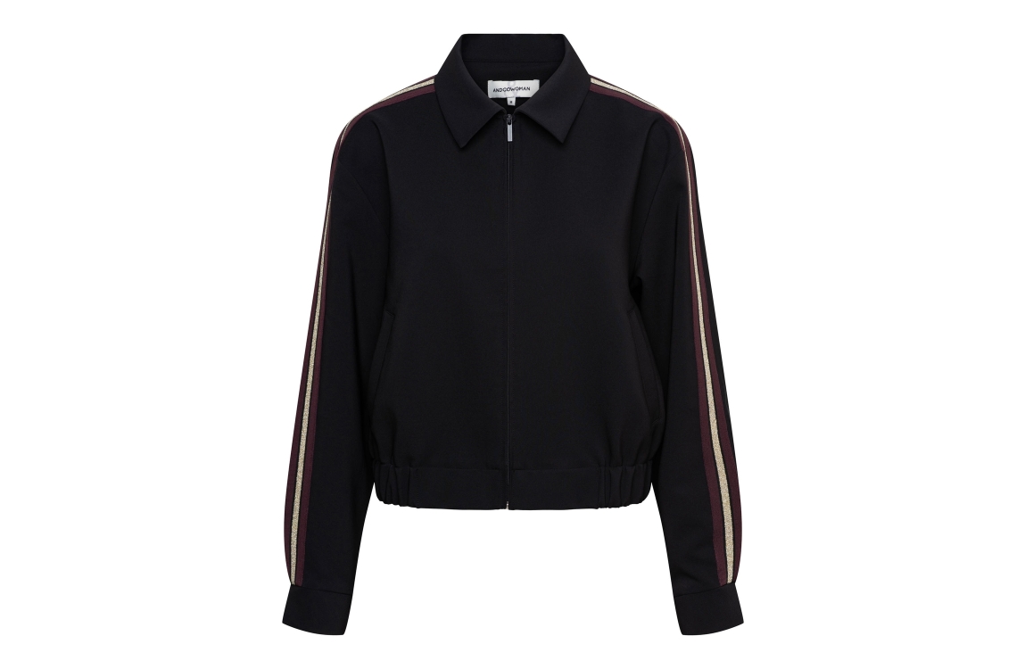 Co Woman FAITH 56050 a-black. Dit sportieve model is voorzien van een kraag en heeft lange mouwen. Dit zwarte jasje van &Co Woman sluit door middel van een rits. Dit model is bewerkt met een bordeaux/gouden tape op de mouw.