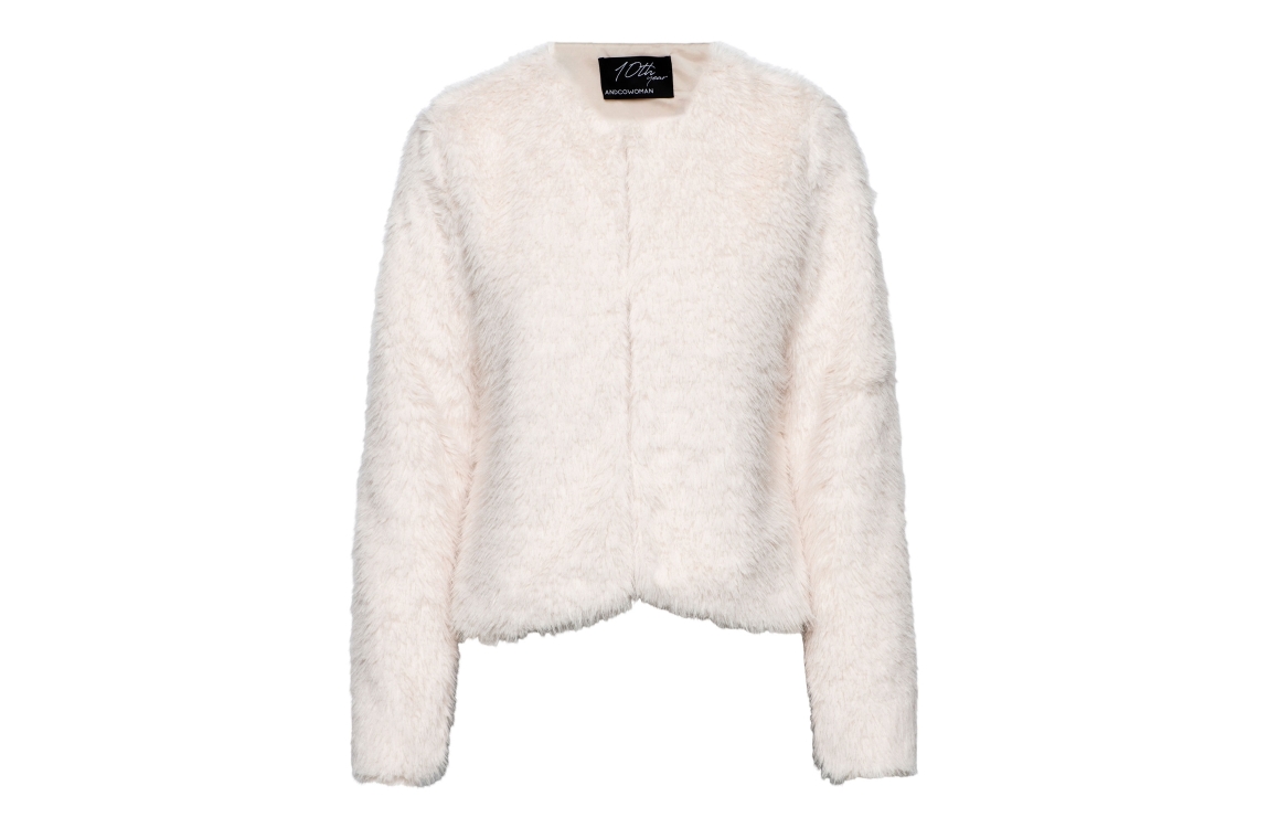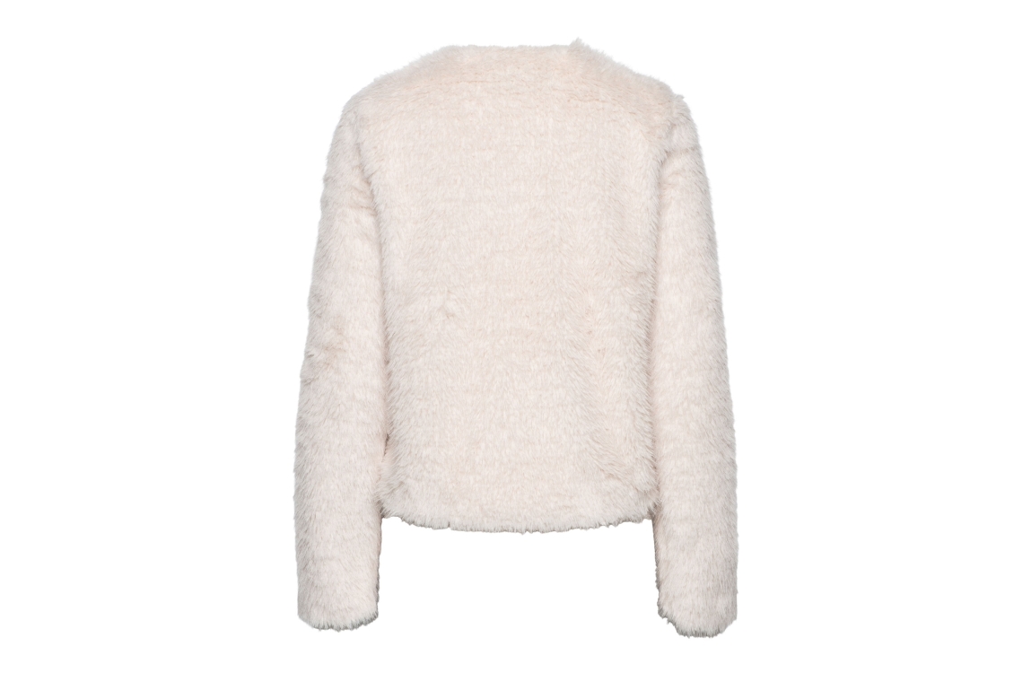 &Co Woman jasje JA133. Dit rechtvallende model heeft een ronde halslijn en lange mouwen. Het off white jasje van &Co Woman sluit aan de voorzijde door middel van haak- en oogsluitingen en is uitgevoerd in fake fur kwaliteit.