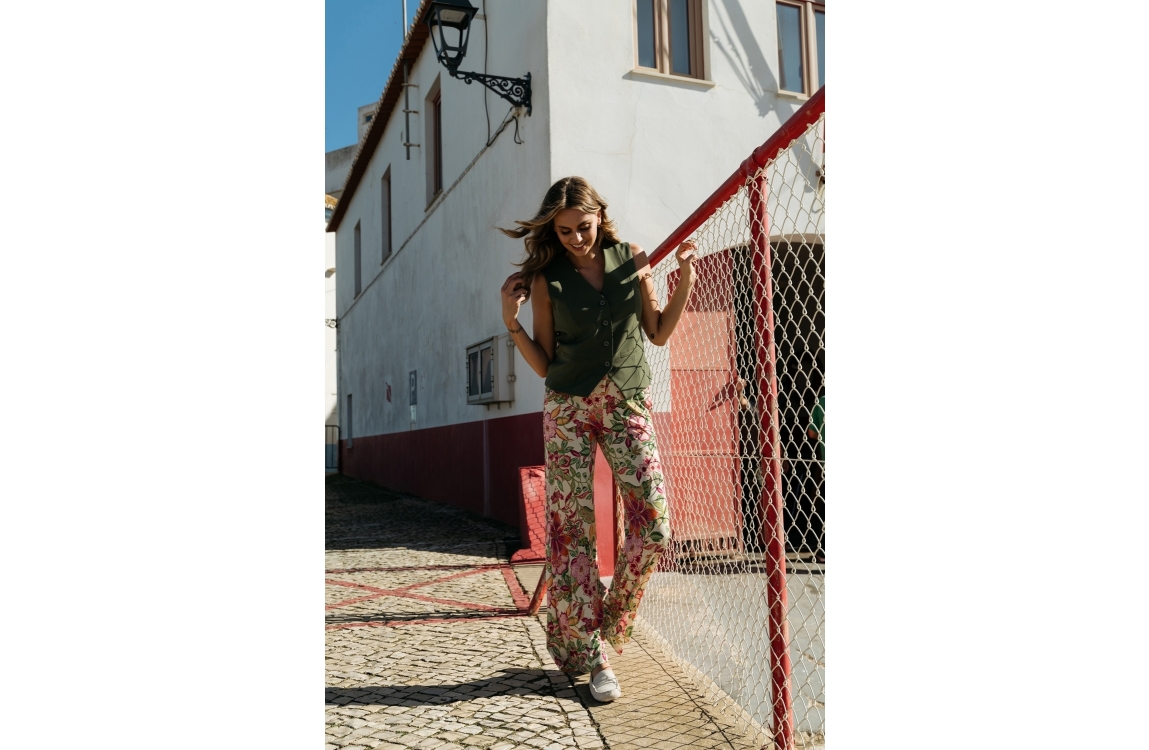 &Co Woman Priya gilet GL100. Dit aangesloten model heeft een v-hals en is mouwloos. Dit groene gilet van &Co Woman sluit door middel van knopen en is uitgevoerd met twee decoratieve paspelzakken op het voorpand.