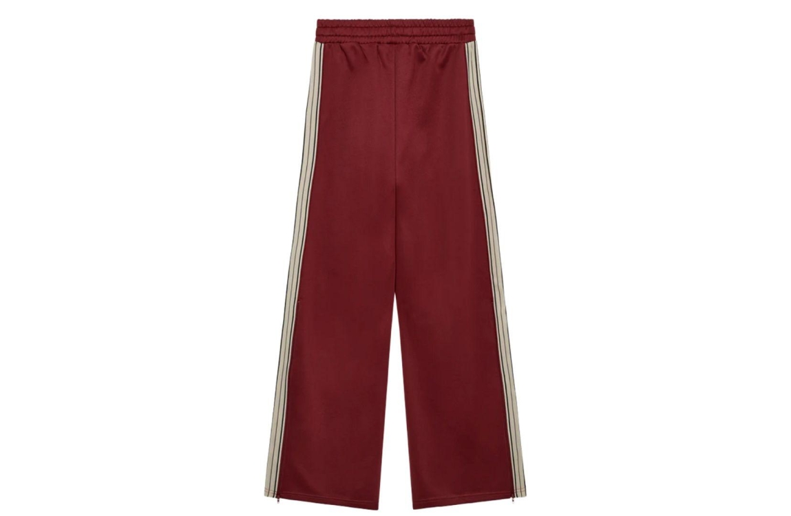 Copenhagen Muse broek 205551 1318. Dit wide leg model sluit door middel van een elastische boord met trekkoord. Deze donkerrode broek van Copenhagen Muse is voorzien van twee zijzakken en is gedetailleerd met een geborduurd logodetail en ingestikte plooien. Het model heeft een hoge taille en is aan de zijkanten bewerkt met een sportieve streep.