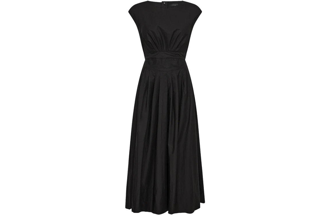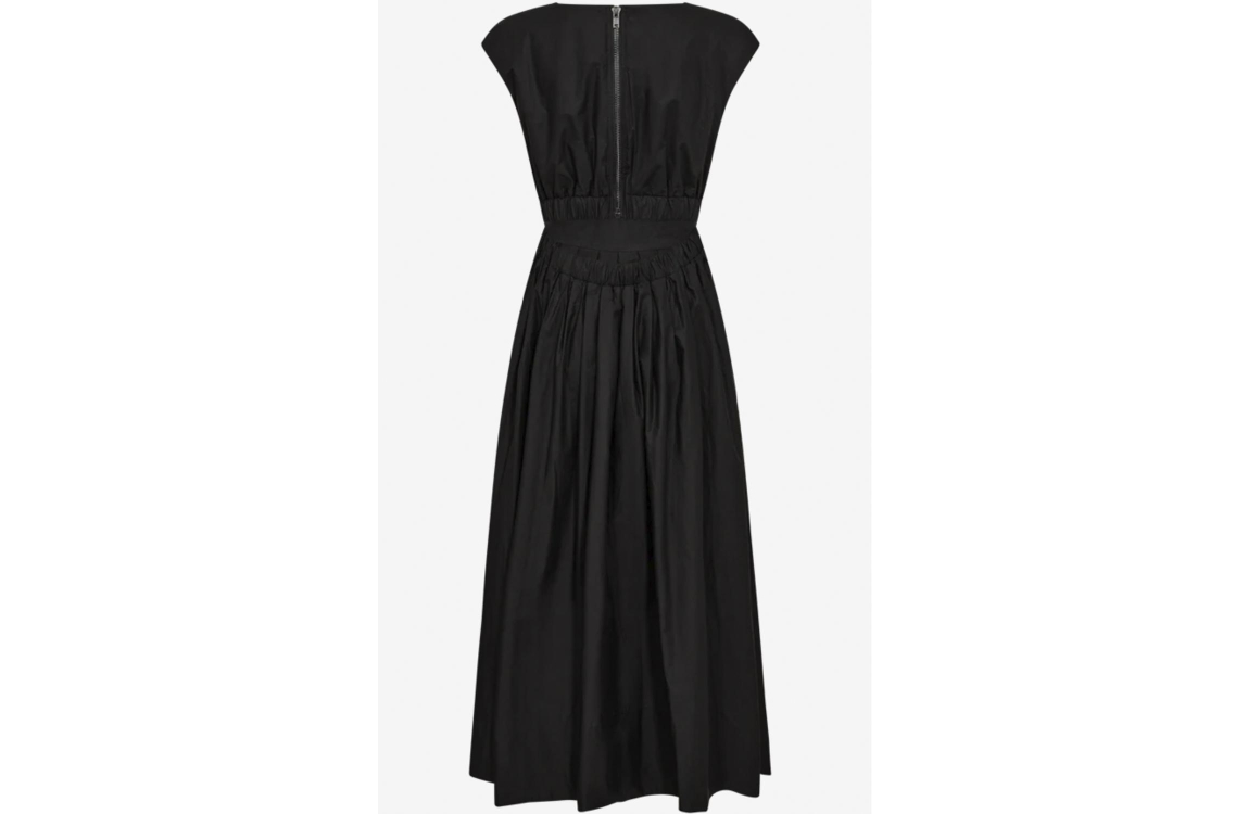 Copenhagen Muse jurk 203935 Poplin. Dit rechtvallend model is voorzien van een ronde hals en is mouwloos. Deze zwarte jurk van Copenhagen Muse sluit aan de achterzijde door middel van een rits en is achter bij de rug open. Dit model beschikt over twee steekzakken.
