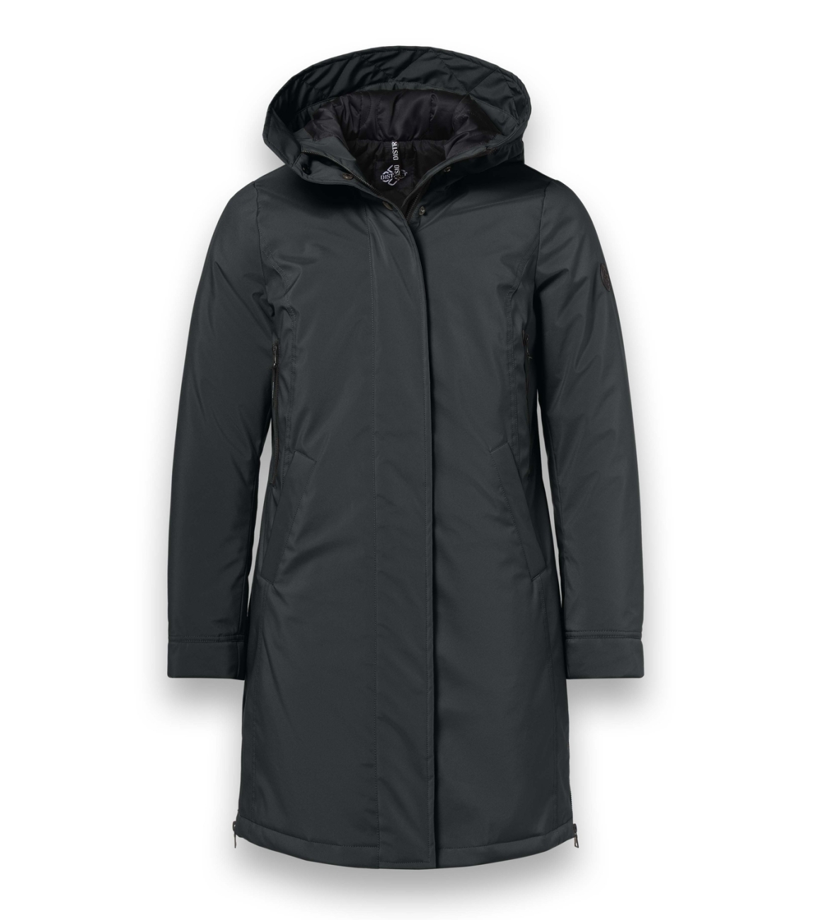 District DAWN winterjas LM14230253/777. Dit rechtvallende model heeft een capuchon en lange mouwen. Deze groene winterjas van District sluit door middel van een knoop en een rits en beschikt over verschillende jaszakken.