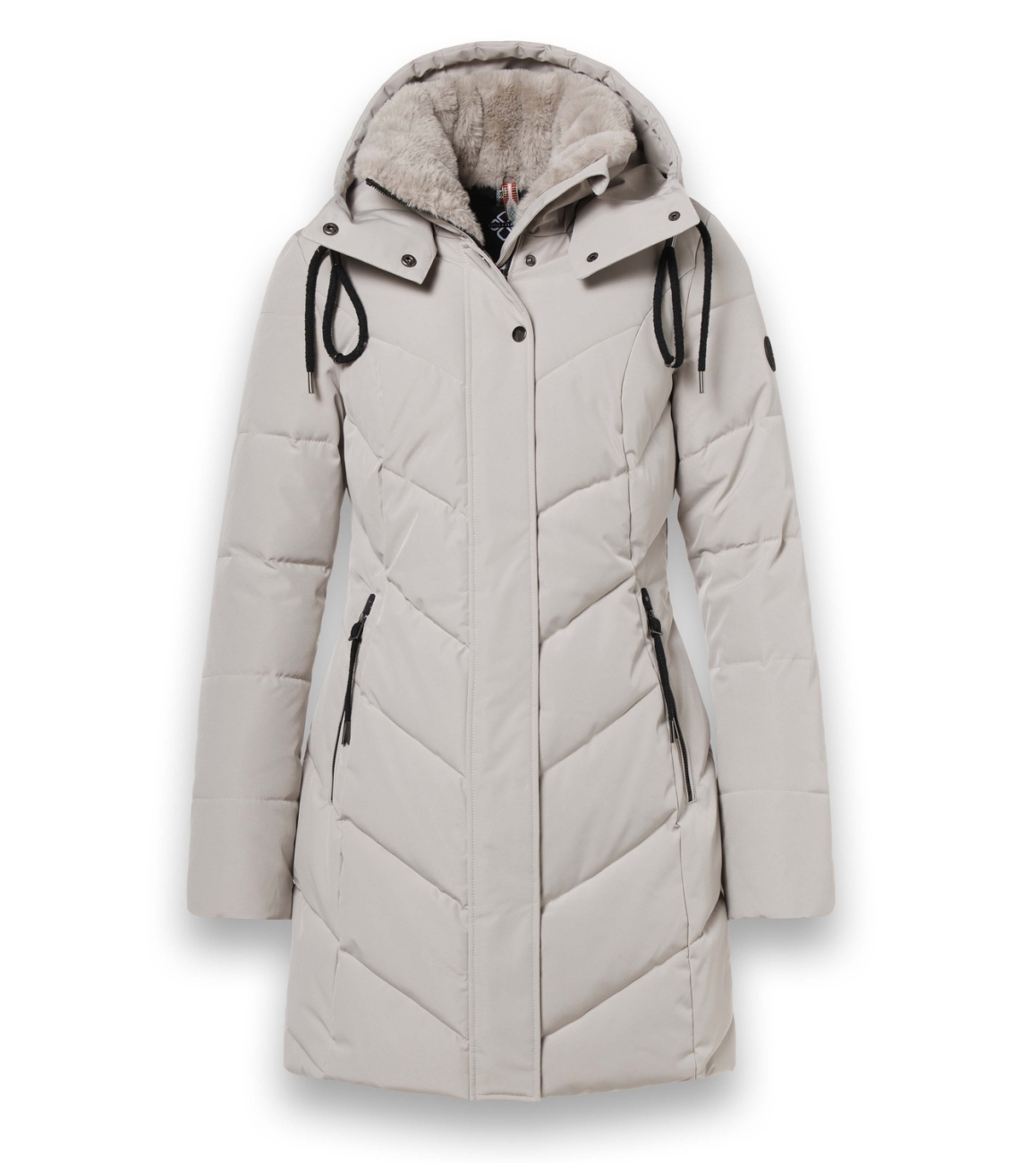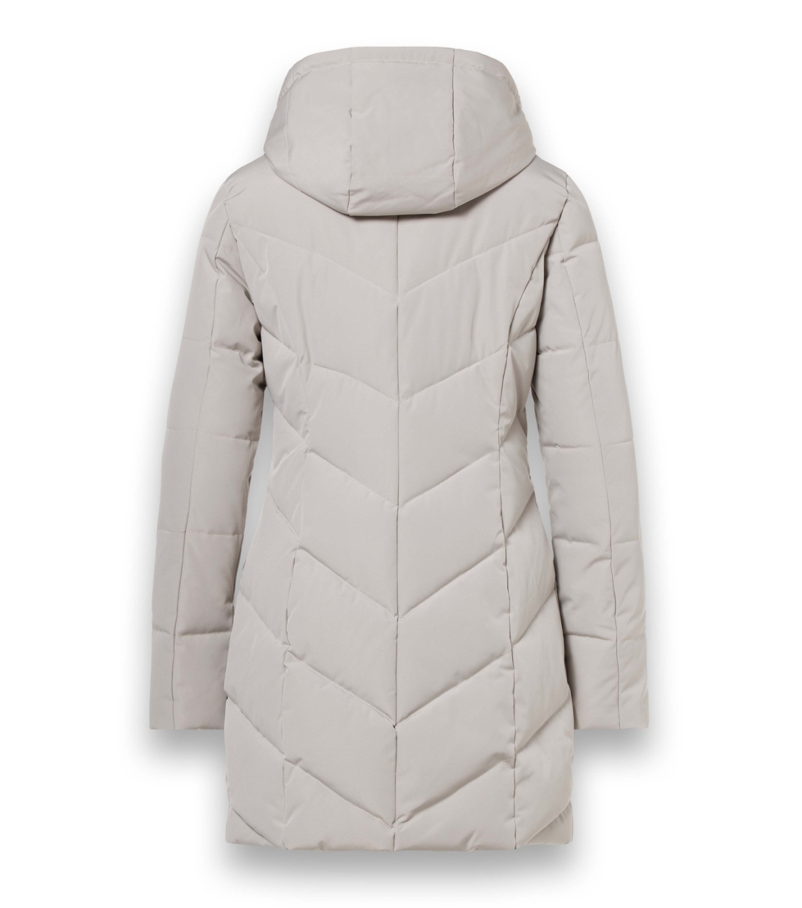 District ZODIAC 216 Moonrock winterjas. Dit rechtvallende model heeft een (afneembare) capuchon, lange mouwen en sluit door middel van een rits. Deze beige winterjas van District beschikt over een waterafstotende coating. Dit model beschikt over verschillende jaszakken en trekkoordjes aan de voorzijde.