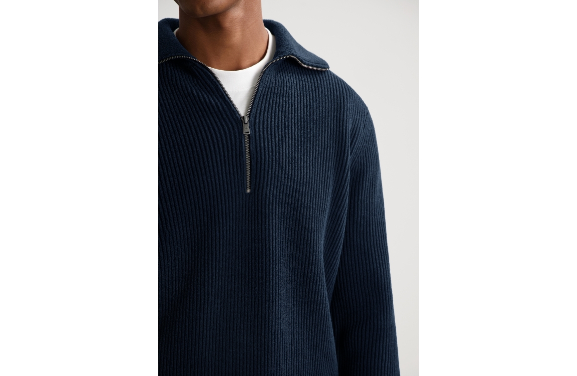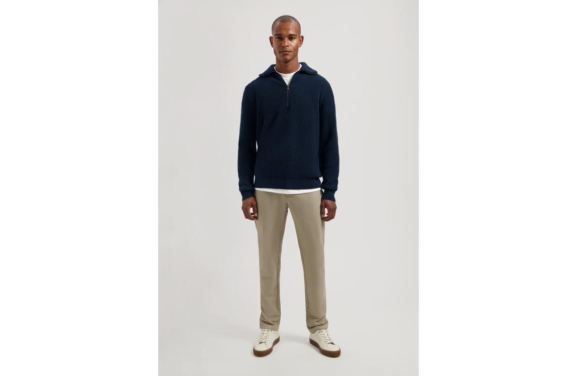 Dstrezzed Josiah Skipper pullover 405708-AW25. Dit rechtvallend model heeft een ronde hals met rits en lange mouwen. Deze blauwe pullover van Dstrezzed is uitgevoerd in een structuur en afgewerkt met elastische boorden aan de onderzijde.