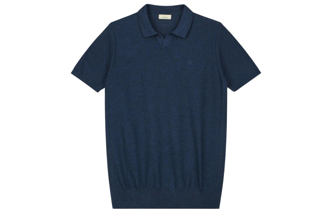 Dstrezzed polo Mercury 420026. Dit rechtvallend model heeft een V-hals en korte mouwen. Deze donkerblauwe top van Dstrezzed is uitgevoerd in een fijn gebreide stof en is afgewerkt met ribgebreide boorden.