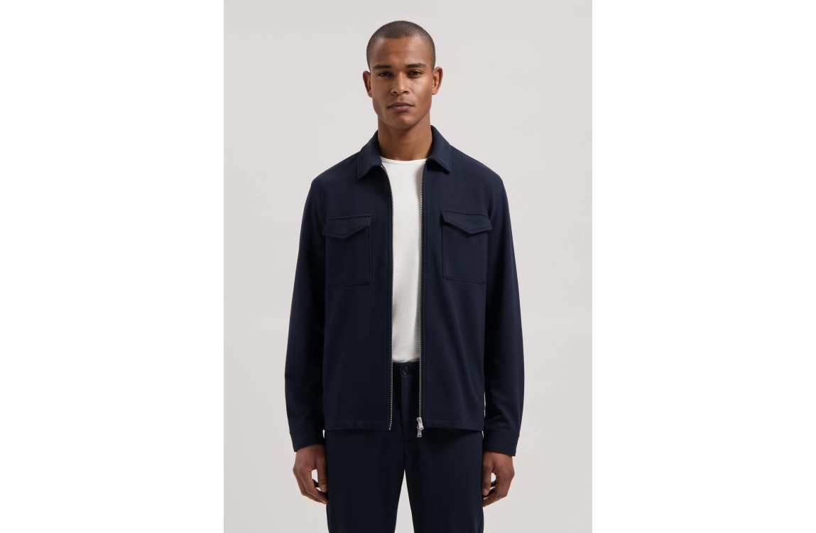 Dstrezzed Pike Overshirt 151031. Dit rechtvallend model heeft een kraag, lange mouwen en sluit door middel van een rits. Dit donkerblauwe overshirt van Dstrezzed is voorzien van klepzakken op het voorpand.