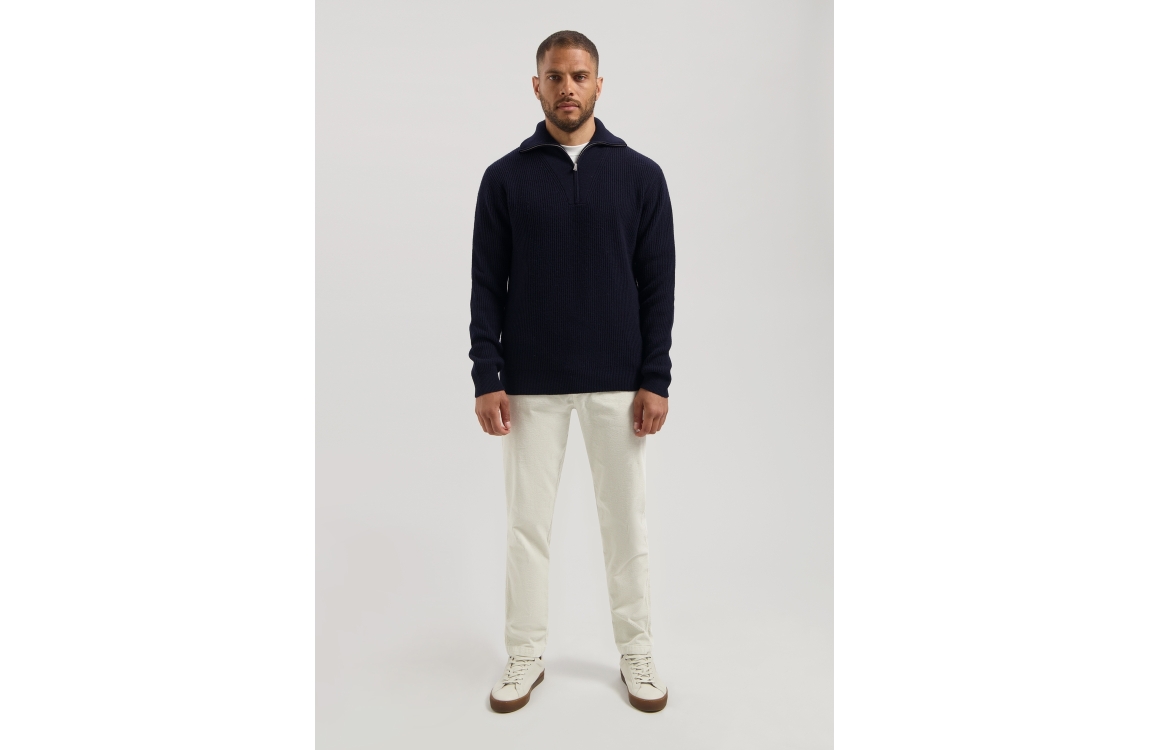 Dstrezzed Stefan Skipper pullover 405939. Dit rechtvallend model heeft een ronde hals met rits en lange mouwen. Deze blauwe pullover van Dstrezzed is uitgevoerd in een structuur en afgewerkt met elastische boorden aan de onderzijde.