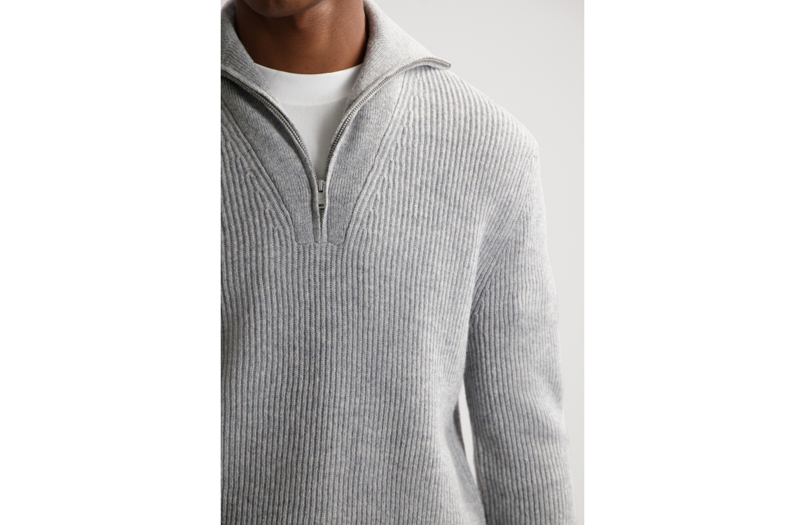 Dstrezzed Stefan Skipper pullover 405939. Dit rechtvallend model heeft een ronde hals met rits en lange mouwen. Deze grijze pullover van Dstrezzed is uitgevoerd in een structuur en afgewerkt met elastische boorden aan de onderzijde.