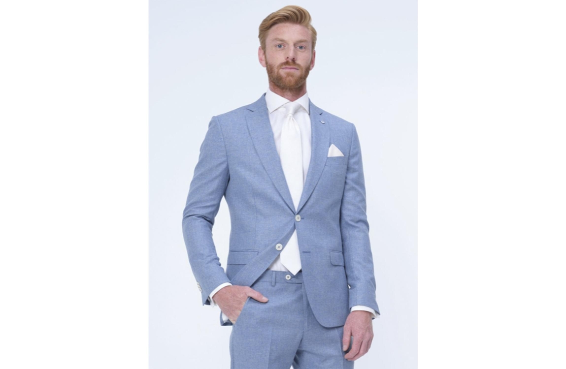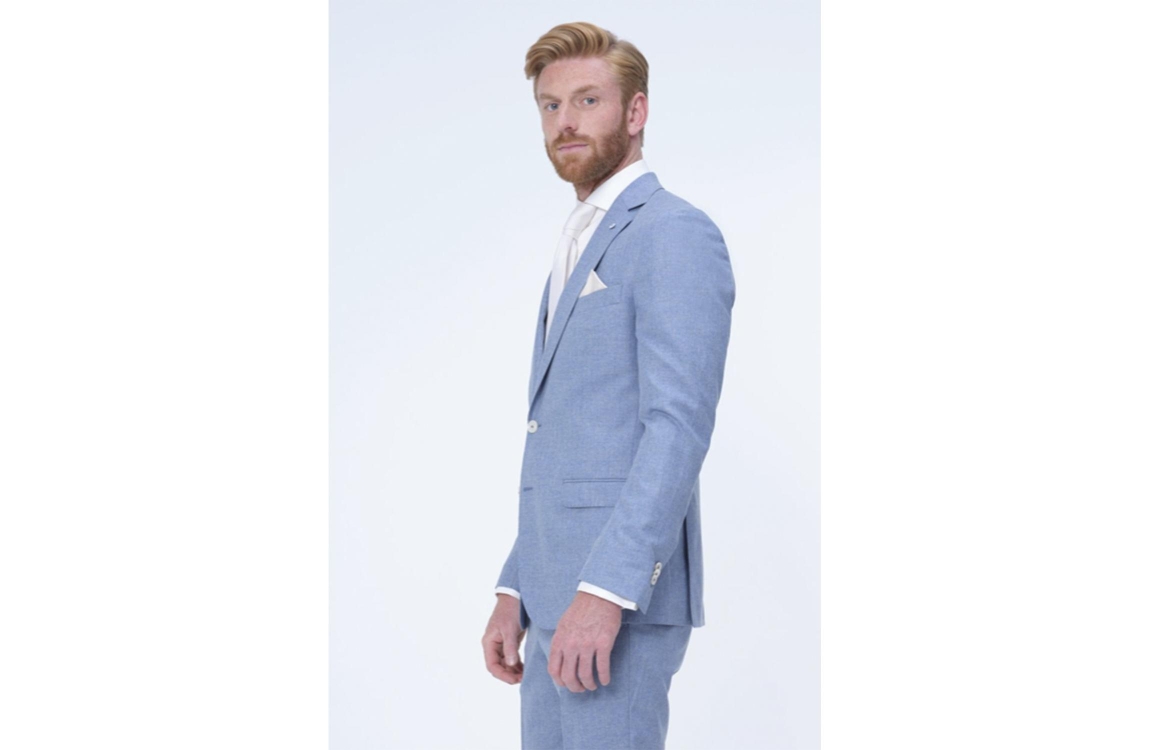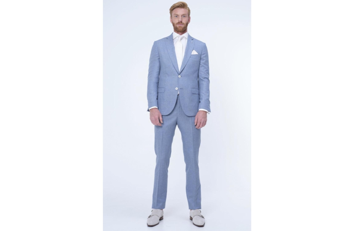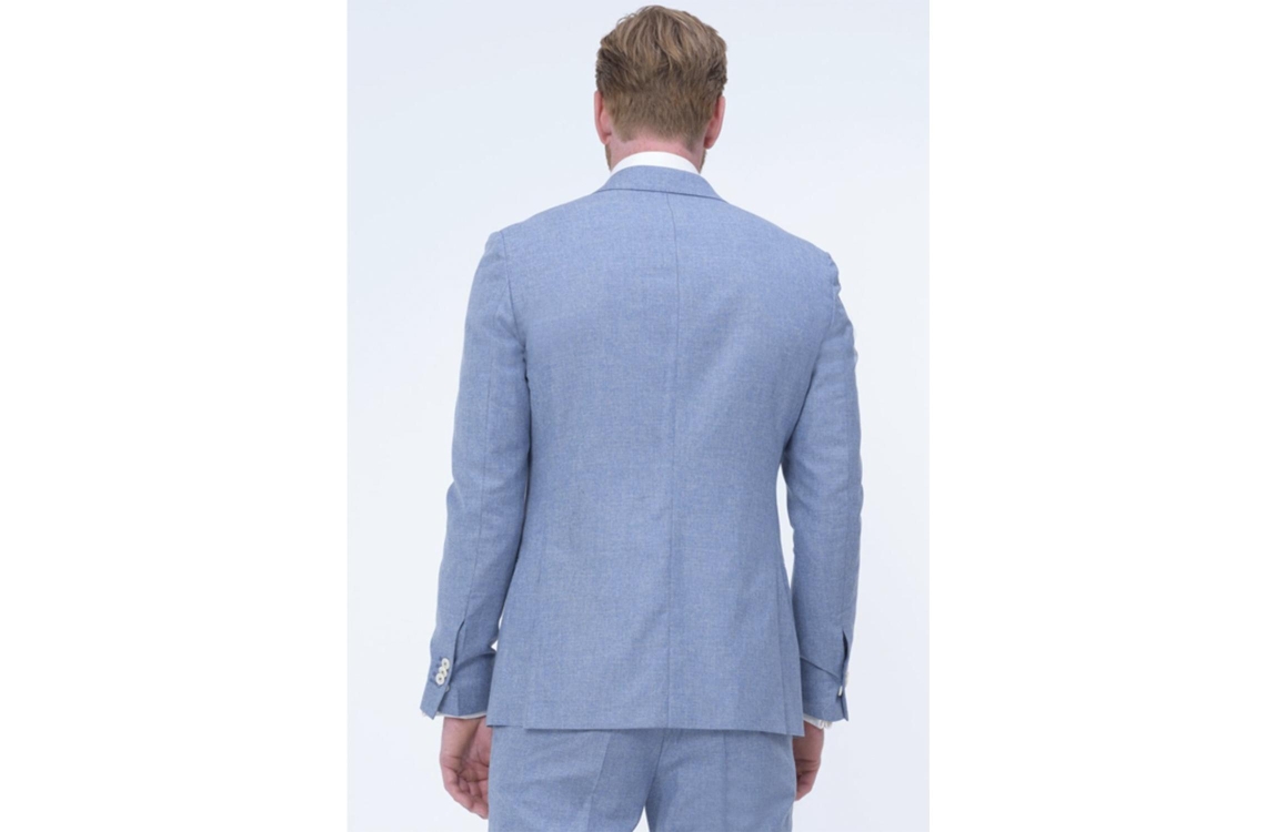 Dutch Dandies 2-delig pak Amalfi DD249. Colbert: Dit slim fit model is voorzien van een reverskraag afgewerkt met logo knoop en heeft lange mouwen met knopen. Deze blauwe colbert van Dutch Dandies sluit door middel van twee knopen en beschikt over twee decoratieve klepzakken en een borstzak aan de voorzijde en is voorzien van drie binnenzakken. Dit model is bewerkt met een dubbele split aan de achter- onderzijde. Pantalon: Dit regular fit model sluit door middel van een knoop en een rits afgewerkt met ceintuurlussen. Deze blauwe pantalon van Dutch Dandies is voorzien van twee steekzakken aan de voorzijde en twee paspelzakken aan de achterzijde die sluiten door middel van een knoop.