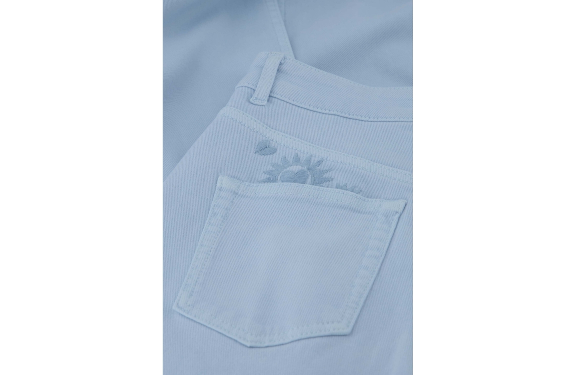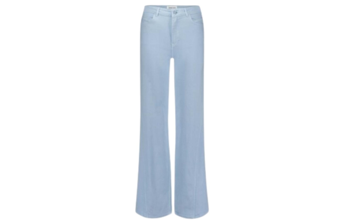 Fabienne Chapot bonnie wide leg jeans. Dit wijdvallend model sluit door middel van een knoop en een rits. Deze blauwe jeans van Fabienne Chapot is bewerkt met verschillende zakken, riemlusjes en een borduur op de achterzijde.