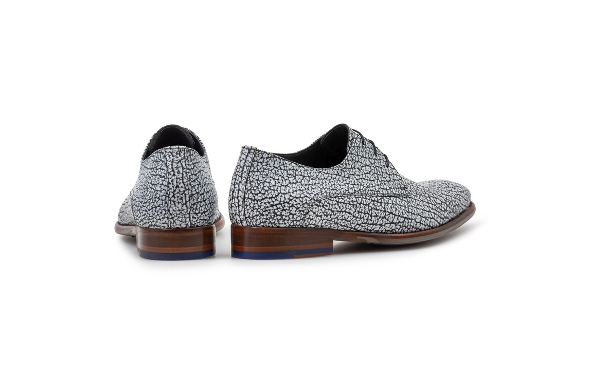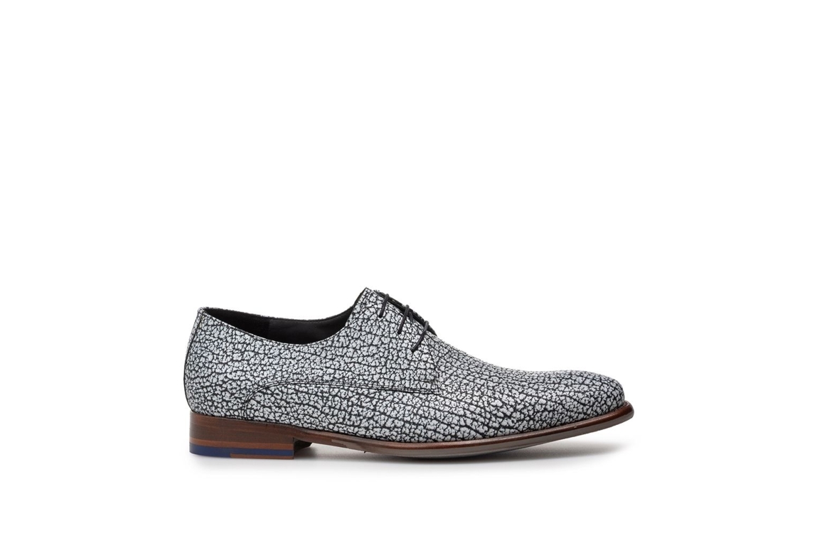 Floris van Bommel schoenen SFM-30262 10-03. Dit klassieke model is voorzien van een vetersluiting. Deze schoen van Floris van Bommel is bewerkt met een zwarte schub structuur en voorzien van een unieke zool.