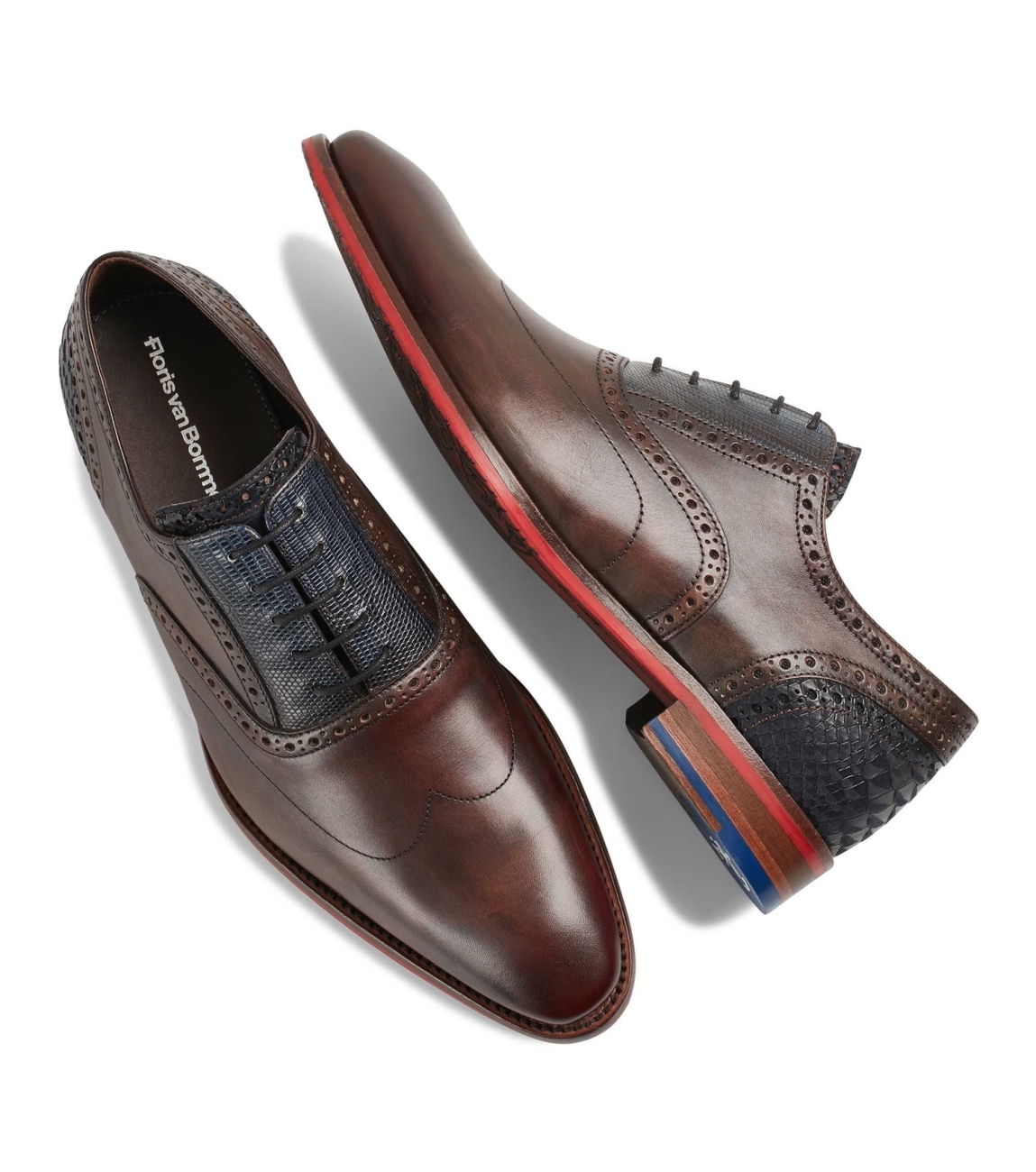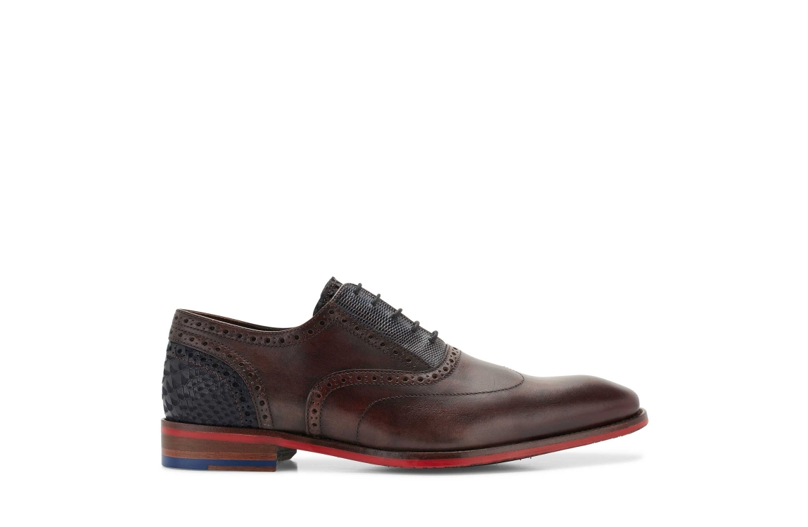 Floris van Bommel schoenen SFM-30229-21-01. Deze donkerbruine schoen van Floris van Bommel sluit door middel van veters en is uitgevoerd in kalfsleder met een rubberen zool.