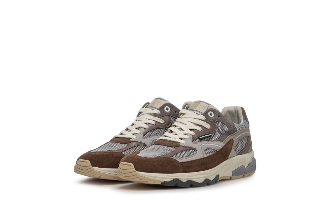 Floris van Bommel sneakers Sport brown suede SFM-10258-20-01. Dit sportieve model sluit door middel van veters. Deze bruine sneakers van Floris van Bommel zijn bewerkt met lichtblauwe en grijze details.