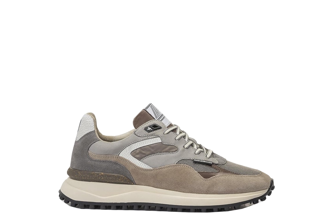 Floris van Bommel sneaker Noppi 18.31 SFM-10159-22-01. Dit sportieve model is voorzien een van grove 'noppen' zool en sluit door middel van veters. Deze bruin/grijze sneakers van Floris Van Bommel zijn uitgevoerd met verschillende materialen en kleuren. De binnenkant van de schoen is afgewerkt met kwalitatief hoogwaardige lederen voering en een uitneembaar voetbed.