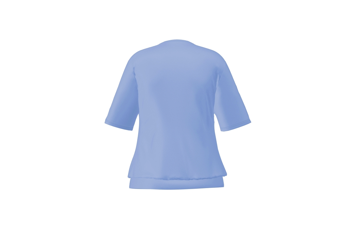 Frank Walder top 712404. Dit soepelvallend model is voorzien van een ronde hals en heeft korte mouwen. Deze blauwe top van Frank Walder is bewerkt met plooidetails bij de hals en is afgewerkt met een boord aan de onderzijde. Dit model is uitgevoerd in contrasterende stoffen.