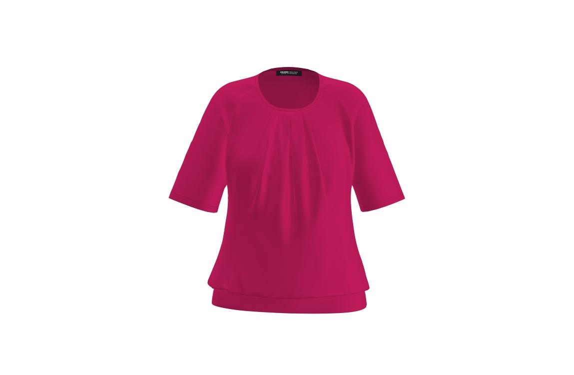 Frank Walder top 712404. Dit soepelvallend model is voorzien van een ronde hals en heeft korte mouwen. Deze rode top van Frank Walder is bewerkt met plooidetails bij de hals en is afgewerkt met een boord aan de onderzijde. Dit model is uitgevoerd in contrasterende stoffen.