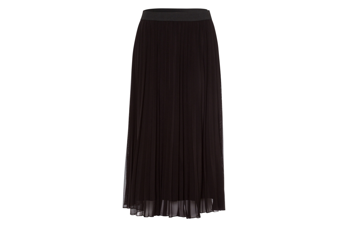 Frank Walder rok W51621250. Dit rechtvallend model is voorzien van een elastische boord en beschikt over een voering. Deze zwarte rok van Frank Walder is uitgevoerd in een plissé materiaal.