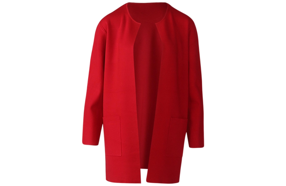 Frank Walder W52Strick 375 Red. Dit rechtvallende model is voorzien van een ronde hals en heeft lange mouwen. Dit openvallend rode vest van Frank Walder beschikt over twee opgestikte zakken.