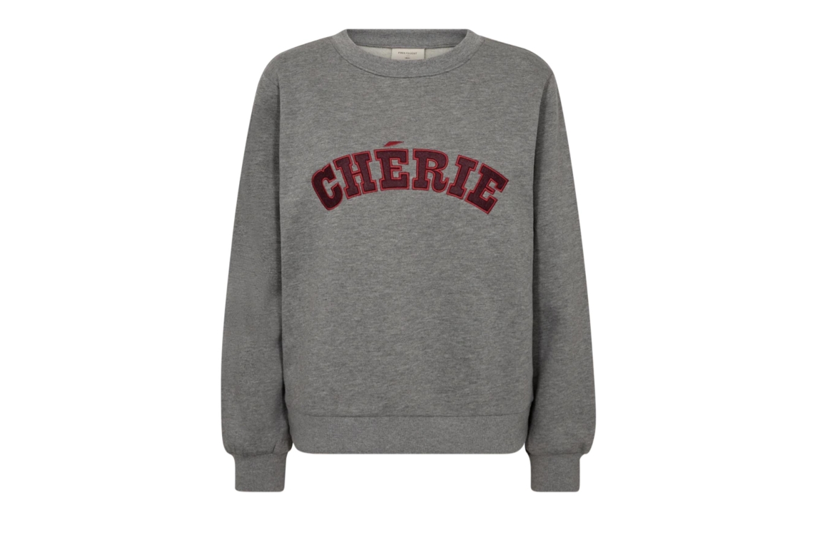 Freequent Embroidery pullover Med.grey mel w. port royale