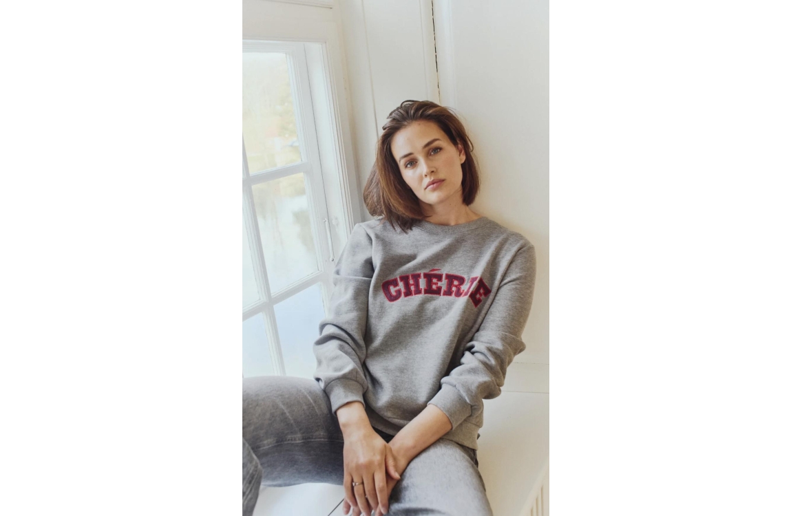 • Freequent Embroidery pullover Med.grey mel w. port royale