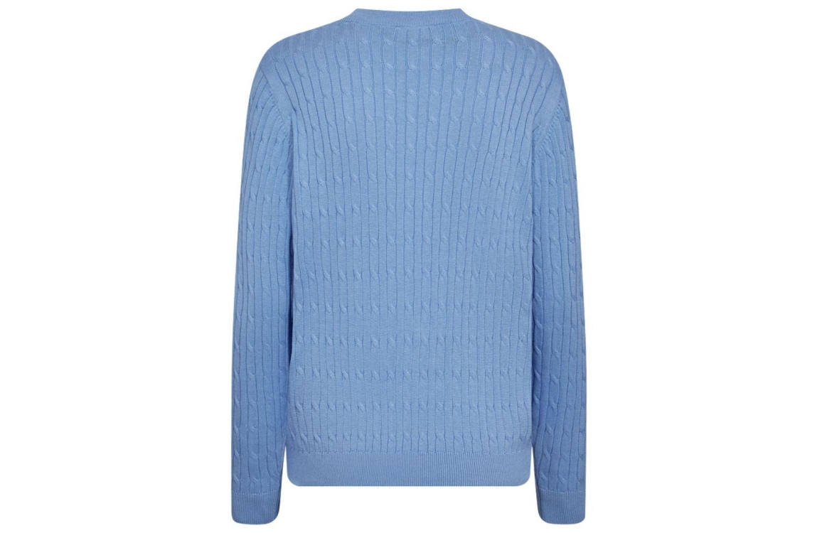 Freequent pullover 207385. Dit rechtvallende model heeft een ronde halslijn en lange mouwen. Deze lichtblauwe pullover van Freequent is uitgevoerd met een kabelpatroon en heeft ribgebreide boorden.